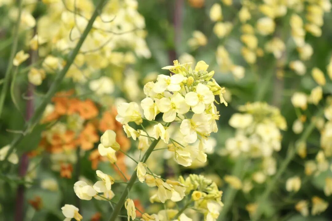 除了金色的油菜花,五彩的油菜花您见过吗?在华亭镇的愚农庄园,这里的五彩油菜花已经竞相绽放。放眼望去,淡粉色、橙色、淡白色、黄色交织在一起,微风拂过,各色花朵轻轻摆动,生机勃勃。
