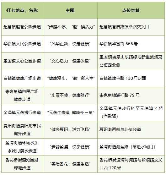 青浦区“健康积分制”荣获第七届“上海医改十大创新举措”,并列为全市首批试点区之一!这一创新模式现已从试点走向全面拓展,并在全区范围内精心选取风景优美、设施便利的公园、绿地、滨水步道,设立健步打卡点。