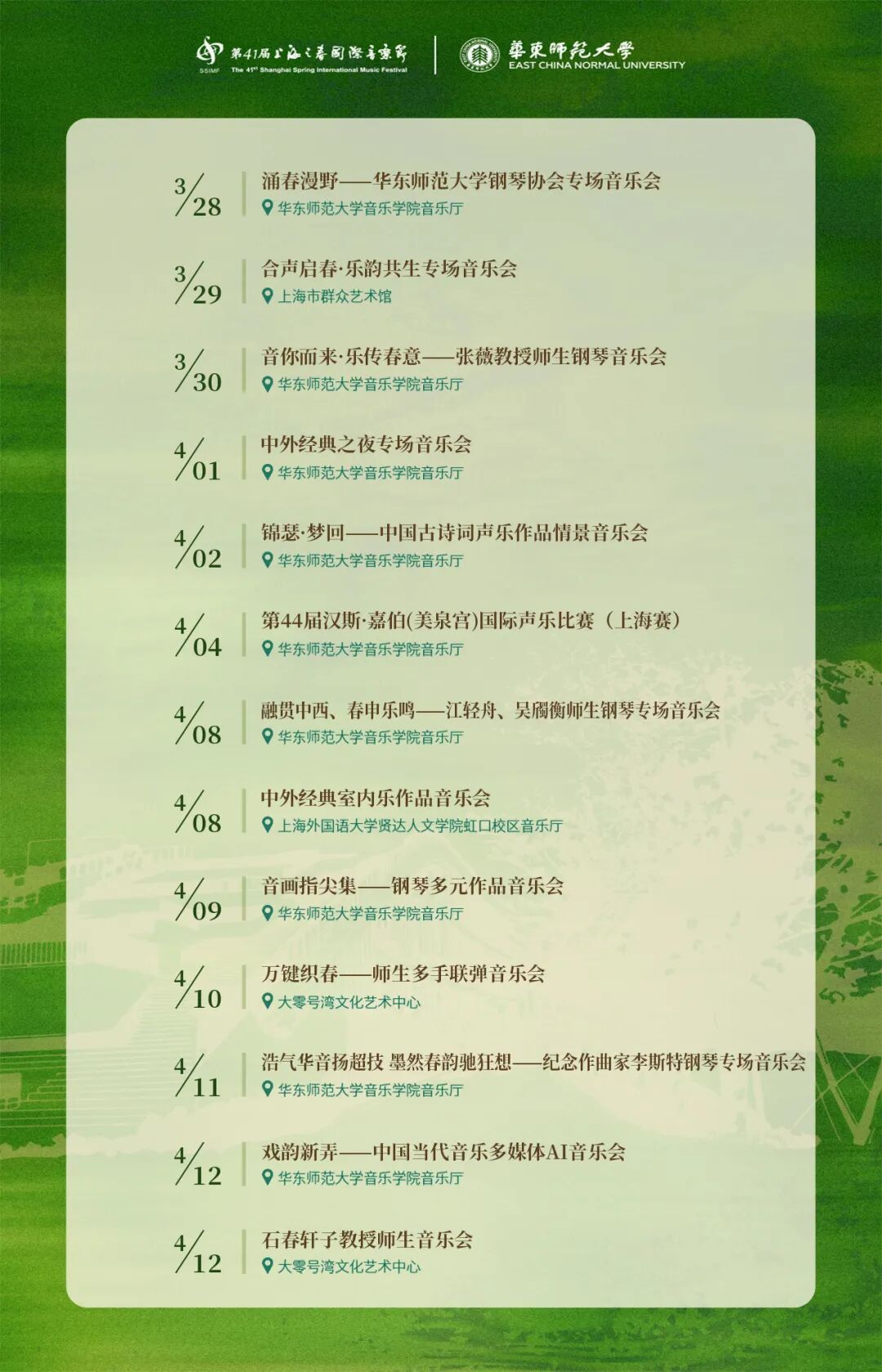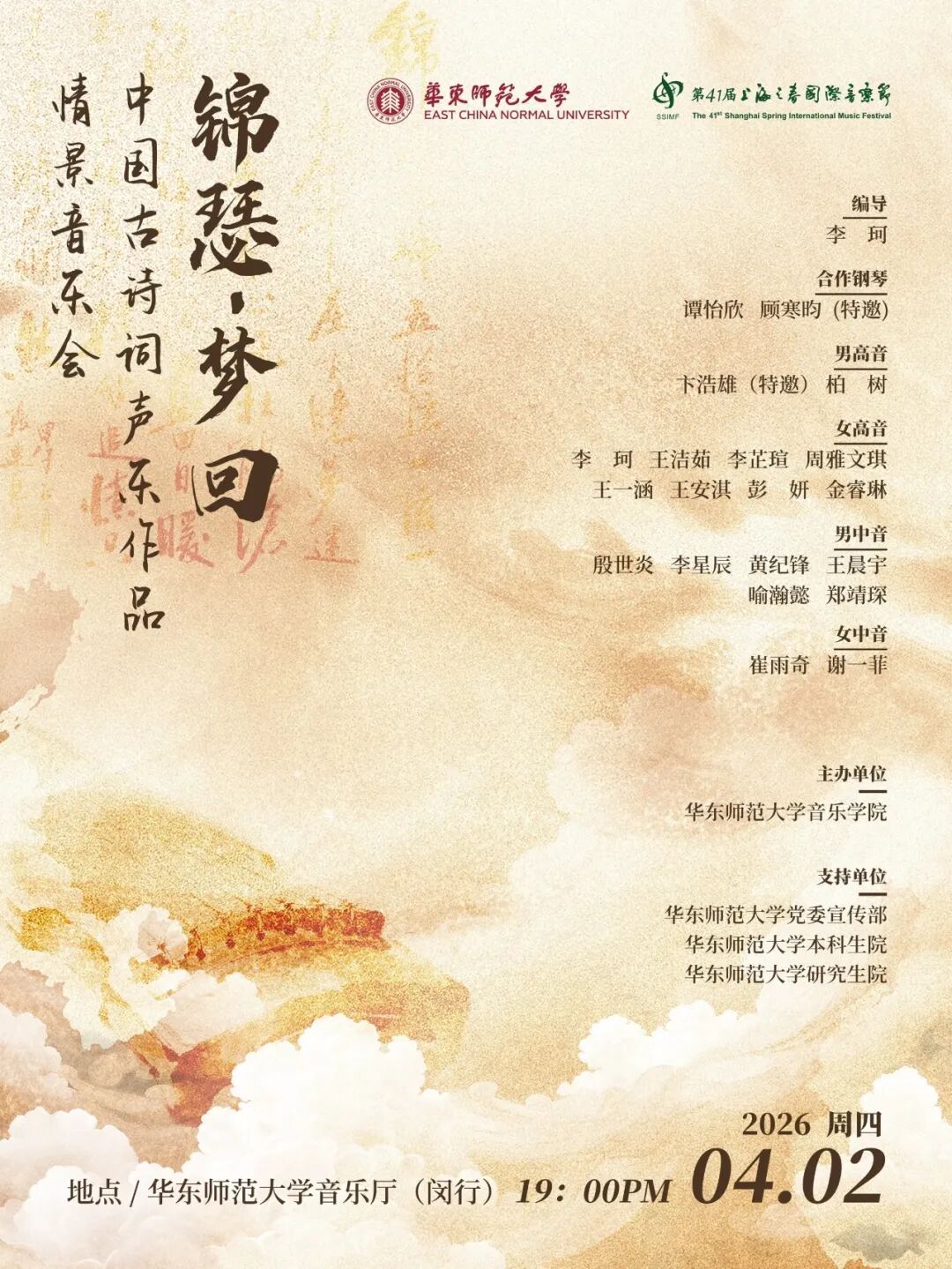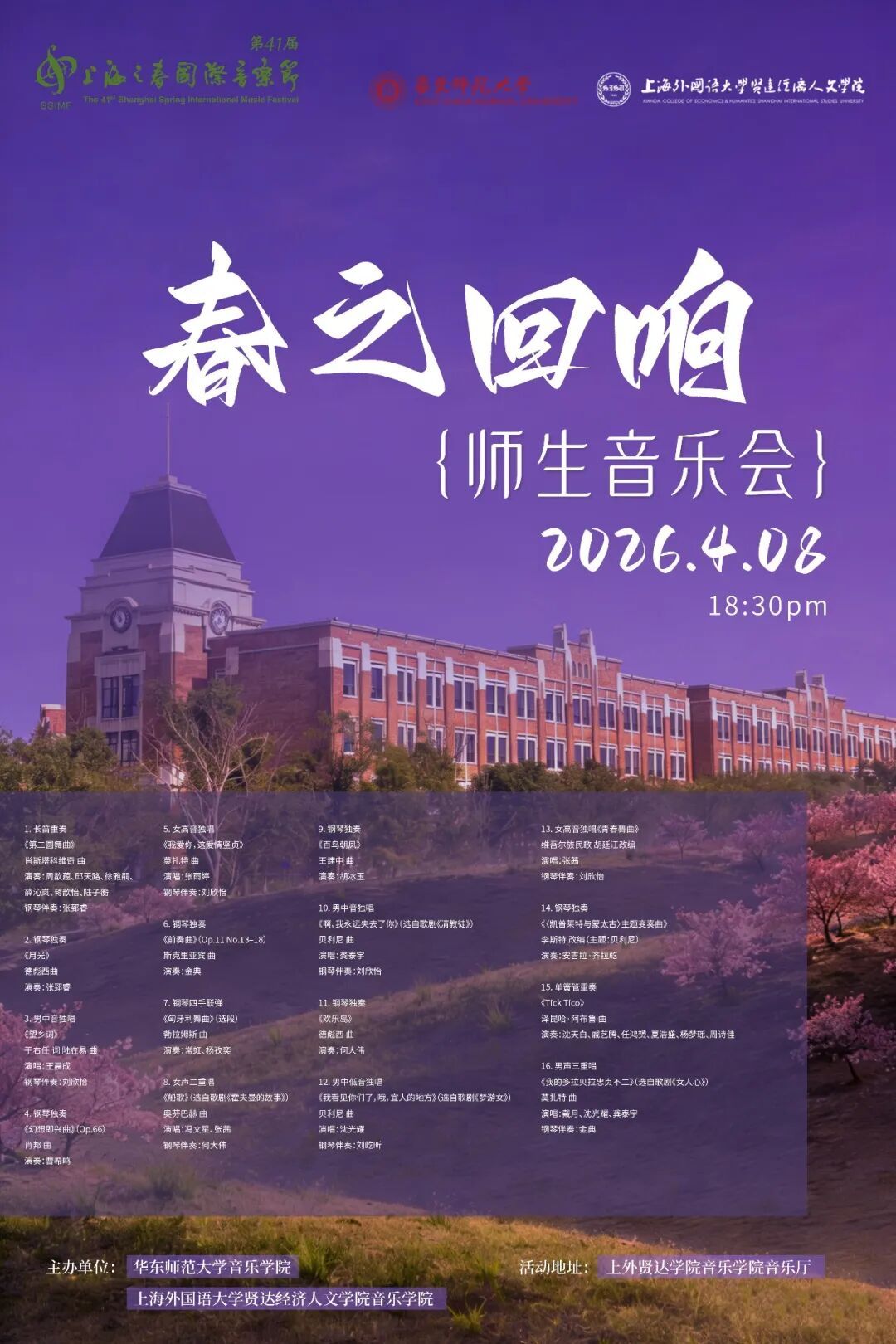 “上海之春”华东师大展示月邀你来乐享春光,让我们相约樱桃河畔,在旋律中感受文化的魅力,在音符中触摸时代的脉搏,守正创新,逐梦新篇!