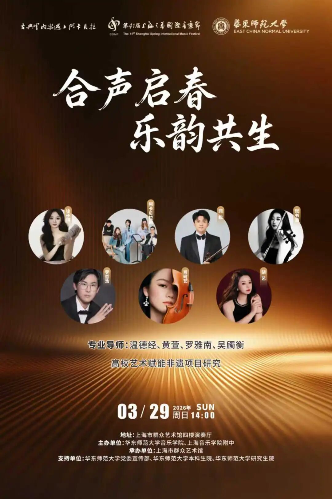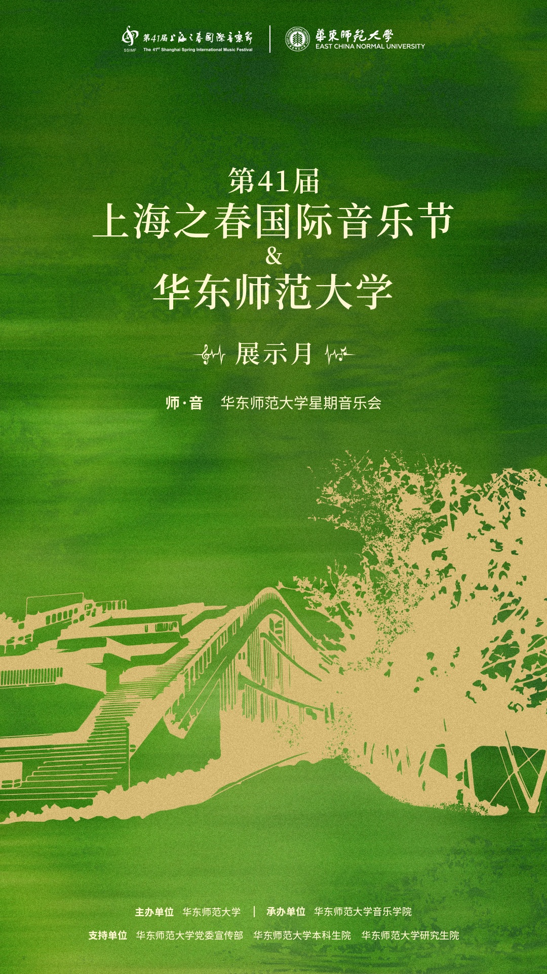 每年“上海之春”国际音乐节期间,华东师范大学都会举办展示月,既为广大师生及市民献上一场场音乐艺术盛宴,也展示了华东师大音乐学院艺术实践教学成果,是美育工作建设和文化传承创新的重要活动。