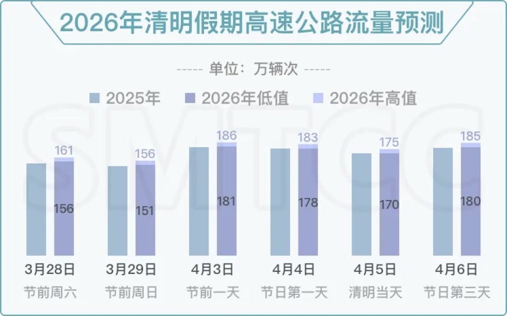 假期快速路日均流量预计达260万至265万辆次,同比上升1%至3%。清明当天早高峰7时至9时的集中出行时段,祭扫车流将对部分快速路路段带来通行压力;返程时段集中在10时至12时,对入城方向的部分快速路路段造成一定压力。