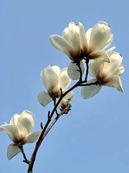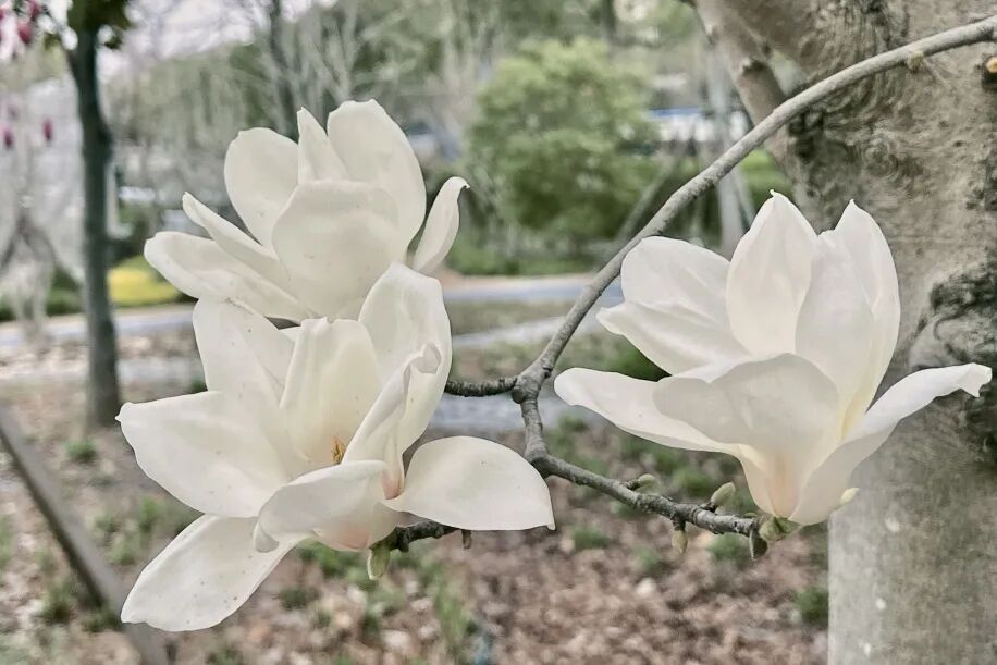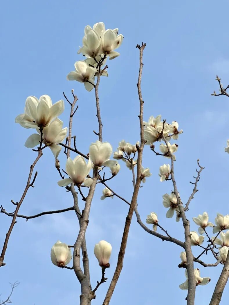 它们在这片土地上迎来了首个春天。有的还是毛茸茸的花苞,像蘸了青白颜料的笔尖,正待饱蘸春色;有的已然盛放,花瓣舒展如温润的玉盏,盛着午后的日光。