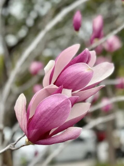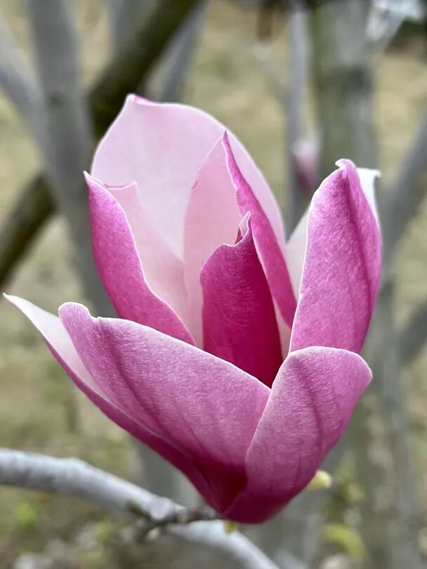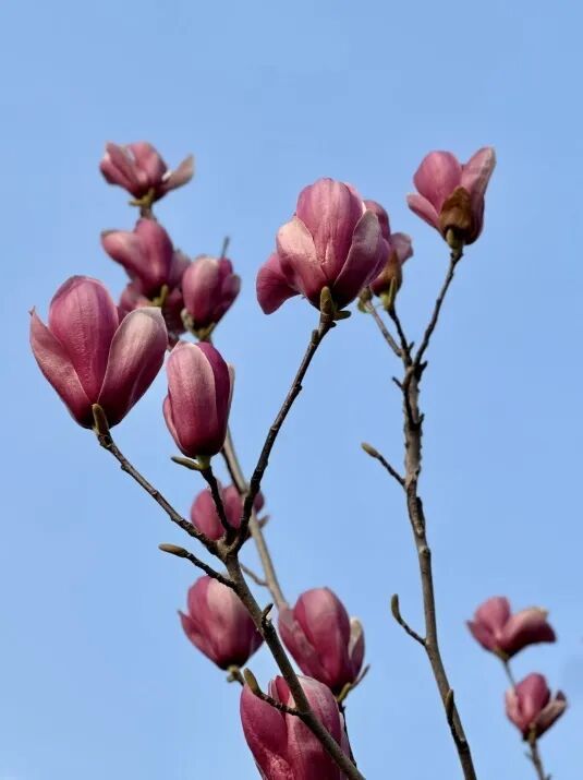 这里的玉兰又是另一番风韵。紫玉兰含苞时最是好看——花苞裹得紧紧的,只露出尖尖一点紫,像蘸满颜料的羊毫,正准备在春日的宣纸上落下第一笔。