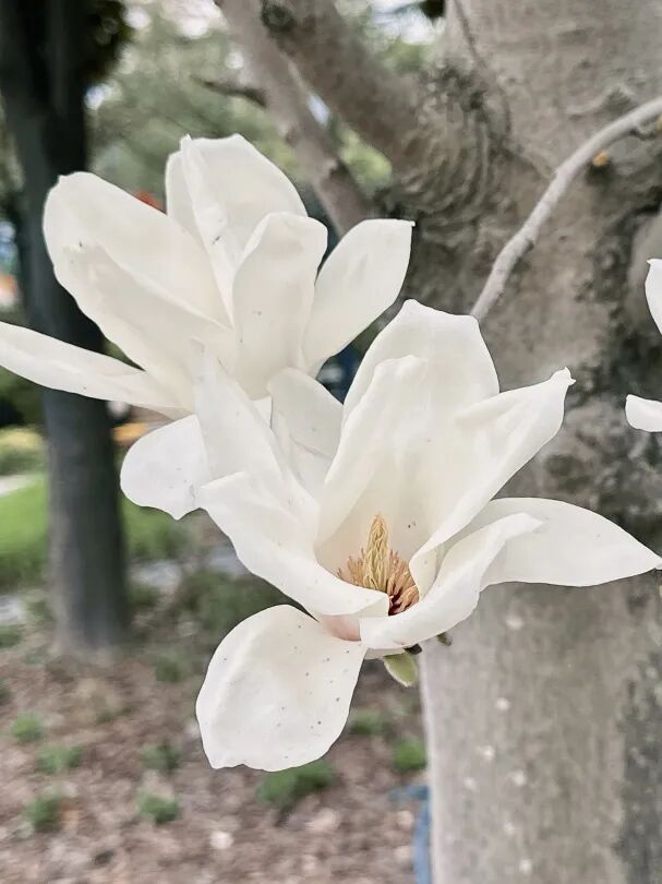 公园虽不大,却因这玉兰而有了意境。步道蜿蜒,花影婆娑。
