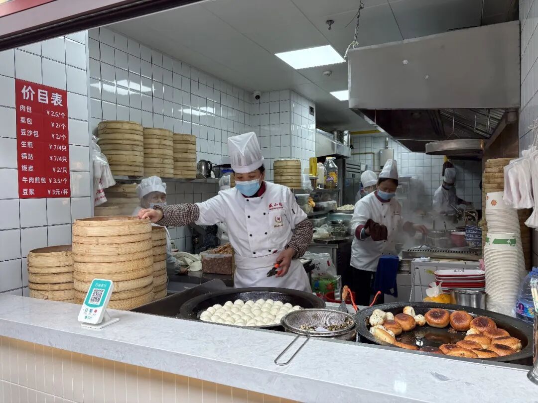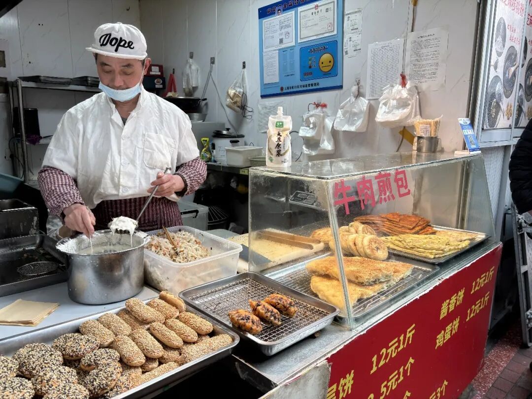 为了避免同质化竞争,菜场在招商时就进行了规划,点心小吃各不重复。在这里,既能找到如今少见的上海特色米饭饼、油墩子,也能吃到北方特色的胡辣汤、水煎包,一站解锁南北风味。
