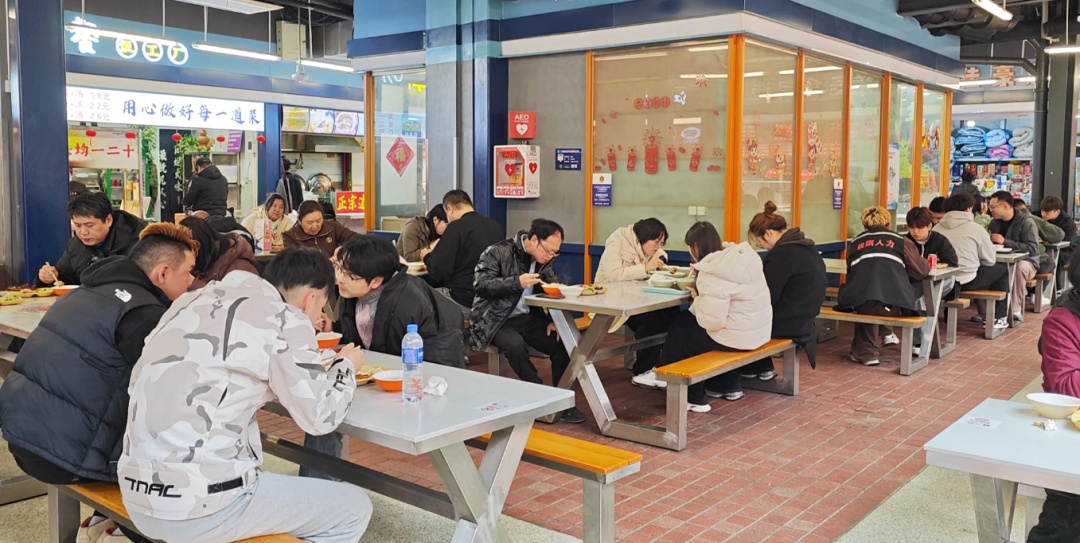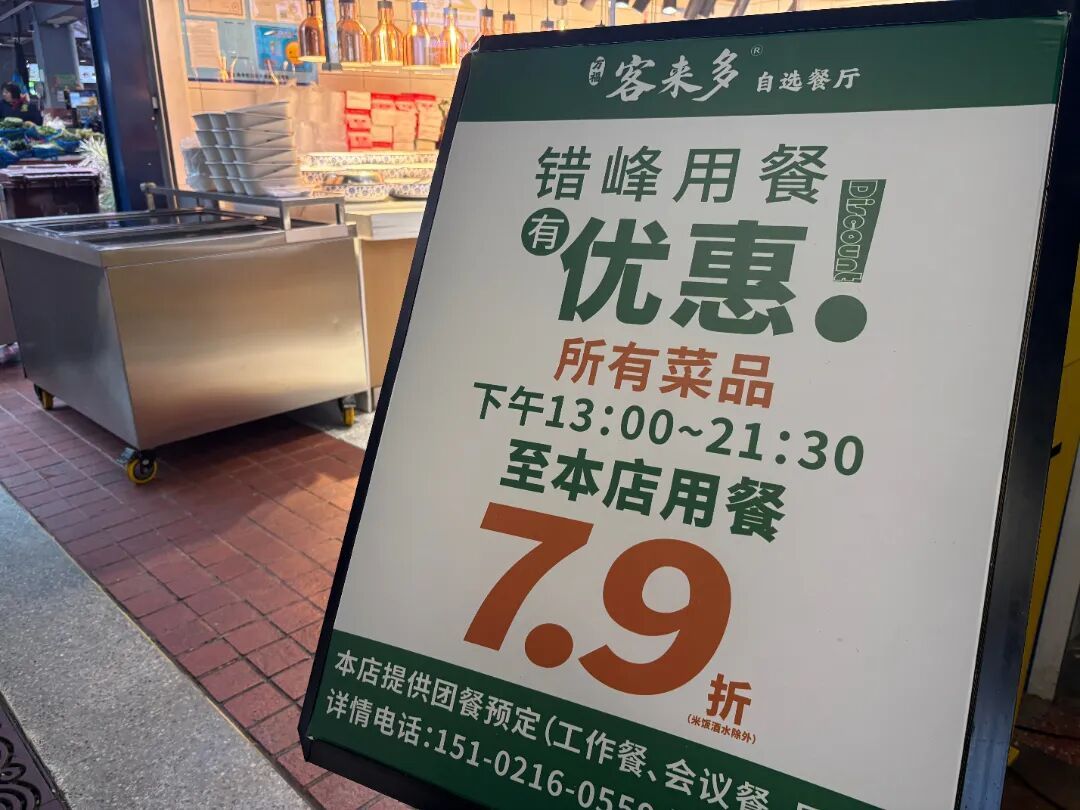 由于中广食集是外卖员集聚地,考虑到外卖员中午跑单繁忙,部分商家特意推出了错峰用餐优惠。“一点后稍微空一点,给小哥们折扣,让他们能省一点。小哥的话,基本一餐消费在18-20元之间。”快餐店负责人张厚祥说道。