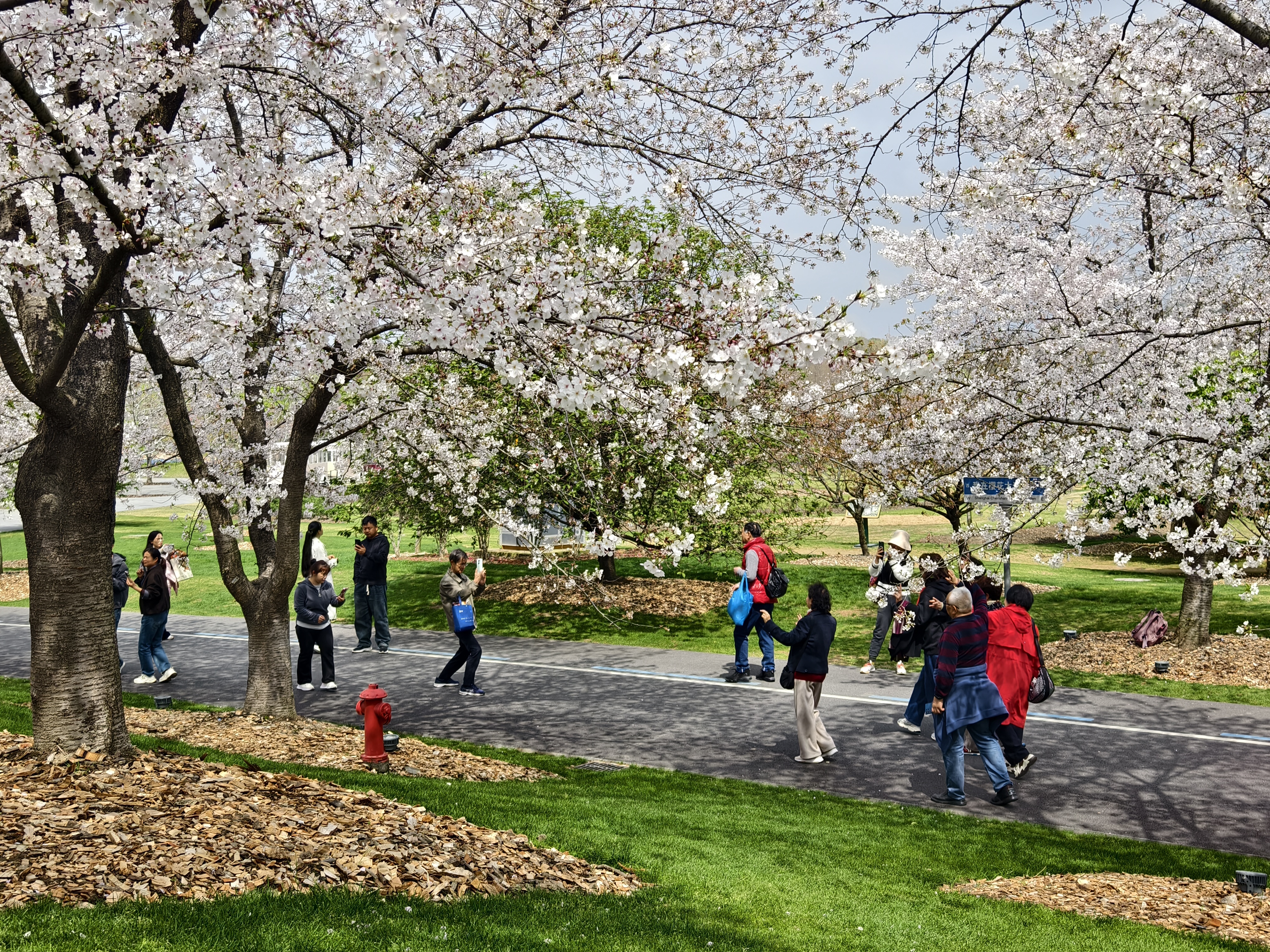 3月31日,辰山植物园樱花大道两旁一树树樱花盛放,在阳光映照下,灿如烟霞。不少游客组团流连树下,精心选机位、摆姿势,争取拍出一张“人生照片”。身穿黄色马甲的“樱花记辰者”志愿者们端着相机穿梭于其间,忙得不亦乐乎。在引导拍摄秩序、劝阻不文明行为之余,志愿者们还举起手中的专业设备为有需求的游客免费拍照,帮他们定格春日浪漫。