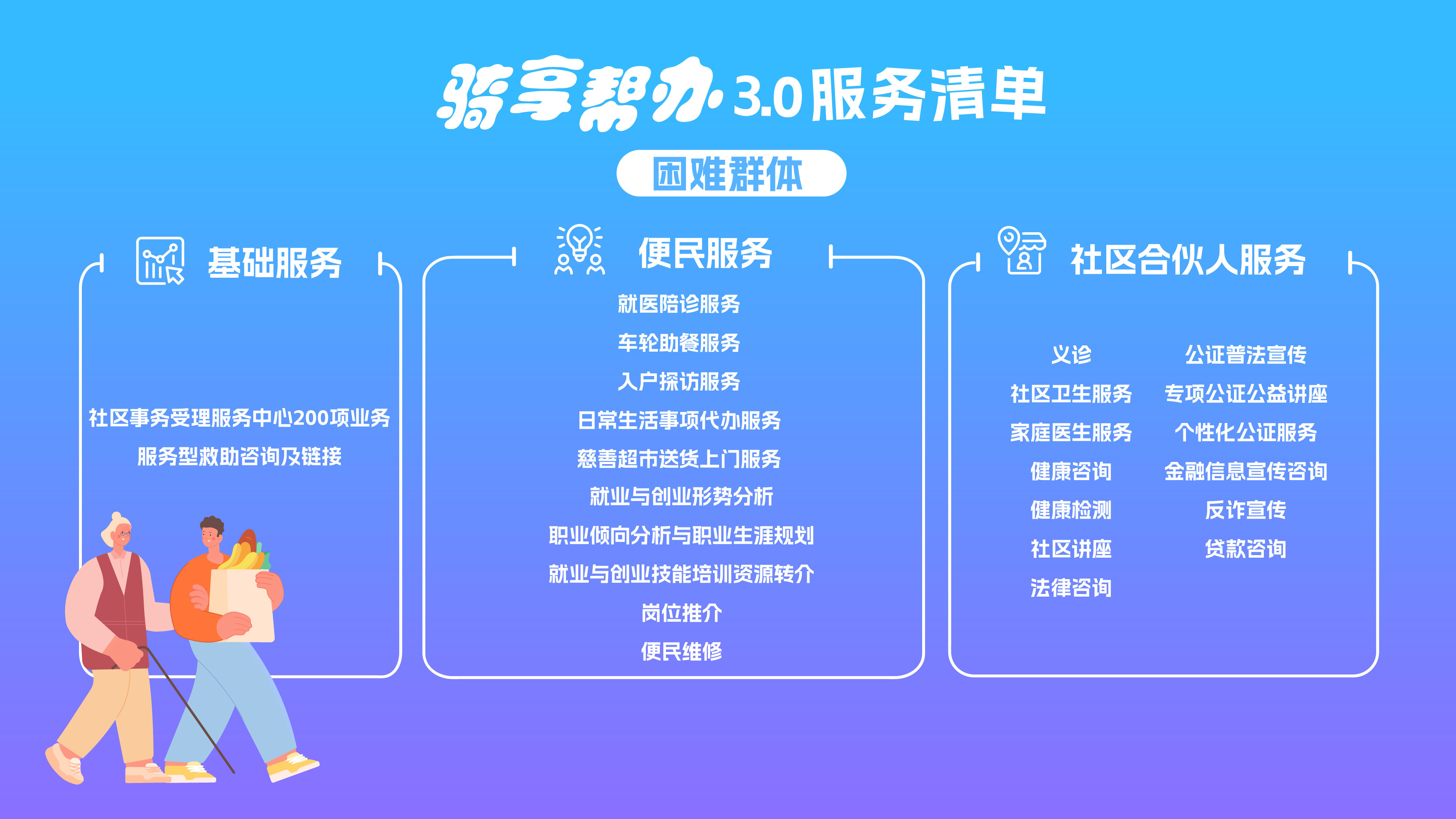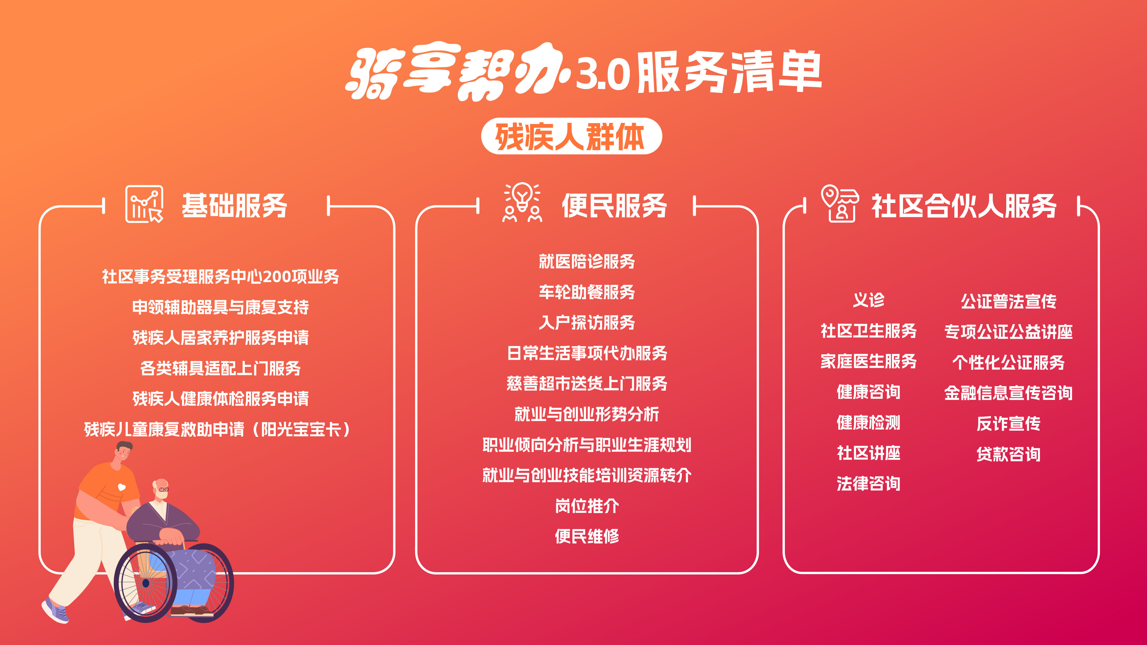 三类重点群体专属服务包——精准对接困难群体、残疾人、老年人需求,涵盖近百项业务;