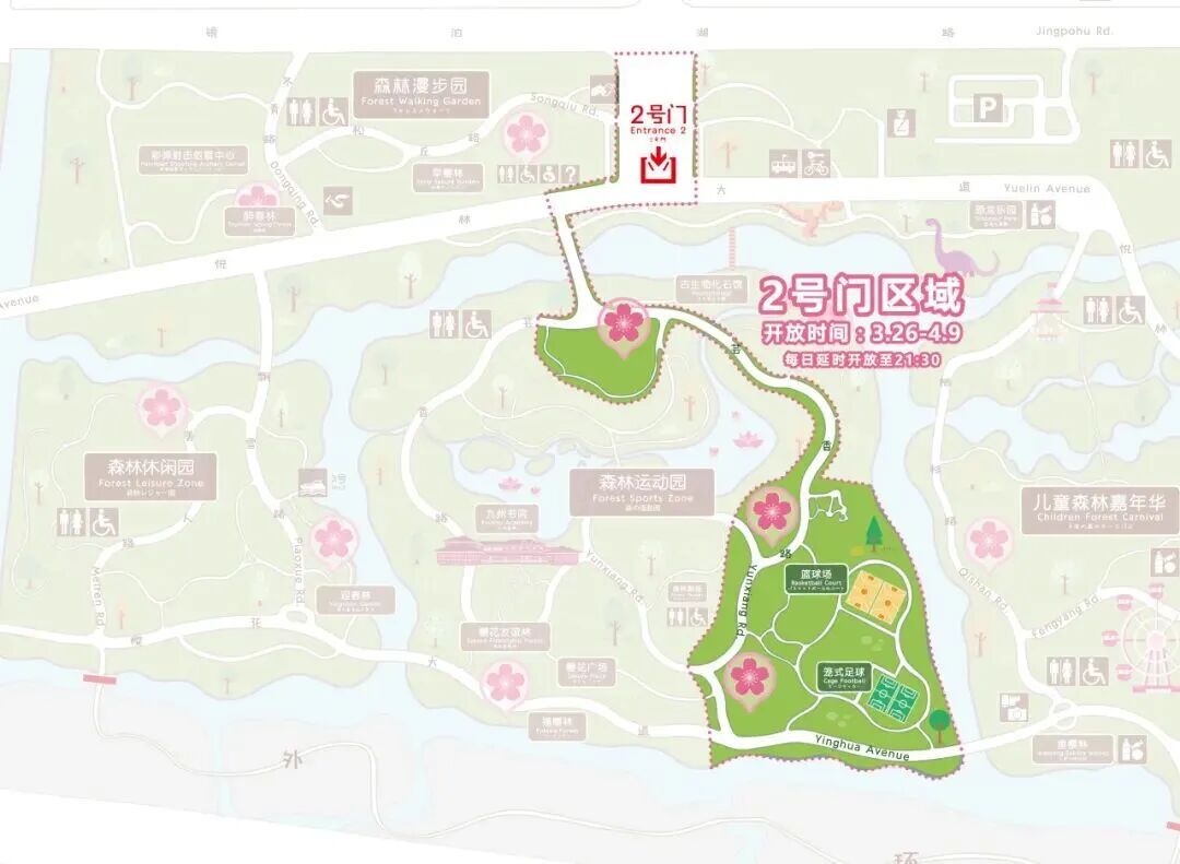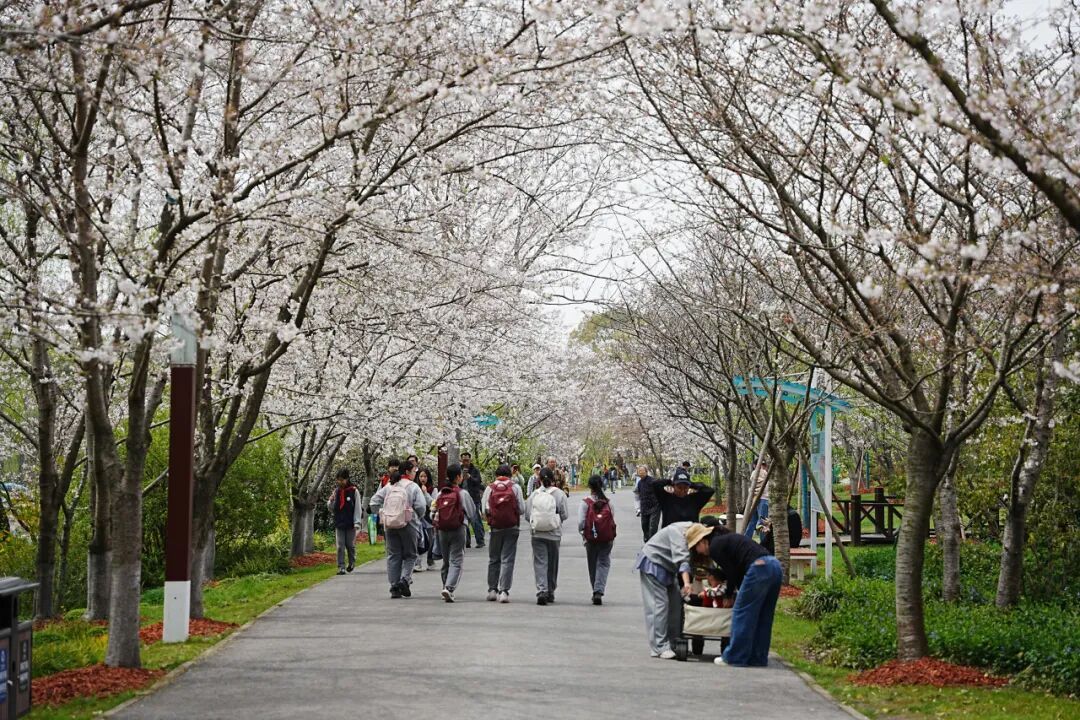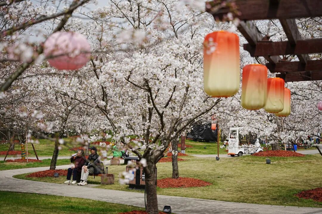 目前,宝山区顾村公园内中樱的花开量已达到80%,层层花枝交错相拥,织就漫天粉霞,满园皆是春意流淌。即将到来的这一周正是中樱最佳观赏期,这也标志着顾村公园正式迎来全年最美的“高光时刻”——春色在此刻达到巅峰,每一处转角都是一幅画,每一树繁花都是一首诗。 赏樱指数 (以上图片摄于2026年3月31日) 最佳赏樱点位 樱花大道、樱花园、森林休闲运动园 推荐指数:✿✿✿✿✿ 如果说白日里的樱花是繁花覆枝、遮云蔽日,蔚然成海,那夜幕笼罩下的樱花便是华灯映雪、灯影流转,暗香浮动。 Cherry blossoms 夜晚赏樱点位 二号门区域 游园 须知 NO.1 须知 游客可通过顾村公园微信公众号、服务号或顾村公园支付宝小程序进行购票(包括免票游客、符合优惠政策的学生、老年人等),享受优惠政策的游客另需出示身份证或各类优惠证件。 公园开放时间:6:00—18:00。 2026上海樱花节期间(3月9日—4月9日)夜间部分区域延长开放至21:30,延长开放期间线上可提前购票,线下售票时间16:30—21:00。 游客入园时,主动出示“购票凭证”,配合工作人员核验。 请广大游客在参观游览过程中,文明、有序游园。咨询电话:56045199、36621019、56045098。 NO.2 门票 顾村公园门票:成人票价格20元/人,大、中小学生凭学生证10元/人,60至64周岁老人凭身份证16元/人,军人、65周岁及以上老人、残疾人等享受免票政策。 2026年上海樱花节延长开放期间门票:成人票价格10元/人,大、中小学生凭学生证5元/人,60至64周岁老人凭有效身份证件8元/人,军人、65周岁及以上老人、残疾人等按相关规定享受免票政策的人群亦可免费入园,同时,樱花卡、宝善卡、工会会员卡在樱花节期间也可使用,按规定享受同比例优惠或免票政策。 免票对象:身高1.3米(含)以下或6周岁(含)以下的儿童、65周岁(含65周岁)以上老人、残疾人、现役军人、退役军人、残疾军人、军休干部、离休干部、烈士遗属、病故军人遗属、因公牺牲军人遗属、现役军人家属、在职、退休、残疾消防救援人员(含政府专职消防员)和消防救援院校学员、在职公安民警(凭相关有效证件)。 NO.3 交通 地铁:顾村公园2号门紧邻轨道交通7号线、15号线顾村公园站。 公交: 1号门:嘉泰线、963、527、528等线路。 2号门:宝山3路、宝山29路、1604、1605等线路。 3号门:1604路。 停车:公园及周边共计6000个停车泊位供游客停车。公园各停车场均为电子支付停车费。