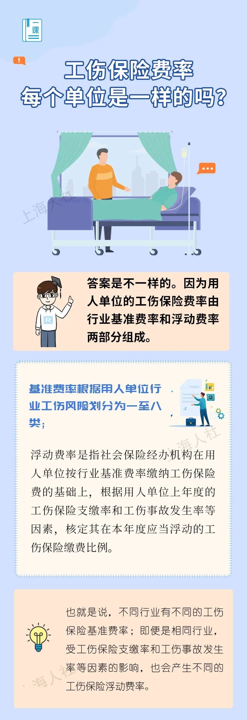某餐饮企业的新手HR小梅最近参加了一个有关工伤保险方面的公益讲座。真是不听不知道,原来工伤保险光是费率就有那么多门道。然而,讲座有些短,小梅虽然做好了笔记,但还有不少政策一知半解。比如,工伤保险费率每个单位是一样的吗?一起来看解答↓