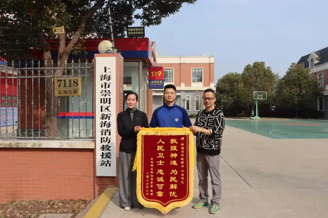 近日,一面印有“救援神速为民解忧 人民卫士忠诚可靠”的锦旗被专程送到了上海市崇明区消防救援支队新海消防救援站。送锦旗的市民家属紧紧地握着消防员万亚的手,眼含热泪地感谢他在危急时刻的挺身而出,为家中重伤老人抢回了宝贵的“黄金救援时间”。