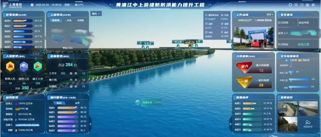 打造以“BIM+GIS+IoT”为数字底座,深度融合上海市“五色工地”管理理念的数字建管平台,实现工程全要素“一屏统览”,并形成智能感知预警、风险闭环管控、质量可视化溯源等多项应用亮点;践行数字孪生水利建设要求和理念,试点应用GNSS、无人机巡检等自动化监测技术,实现数字设计-智慧建管-孪生运维全生命周期管理。