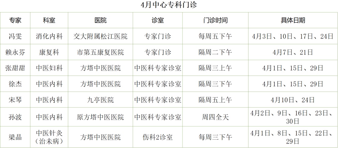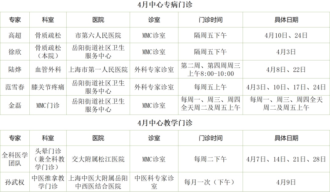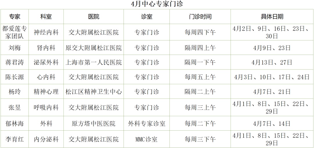 2026年4月专家专科专病门诊一览