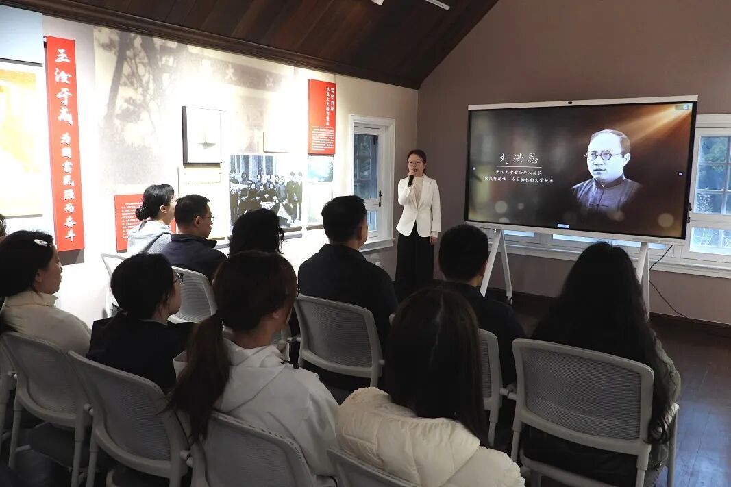 刘湛恩烈士故居红色文化主题馆的烈士墙上,镌刻着校史上15位革命先烈的光辉形象,刘湛恩、李公朴等爱国志士的事迹震撼人心、催人奋进。