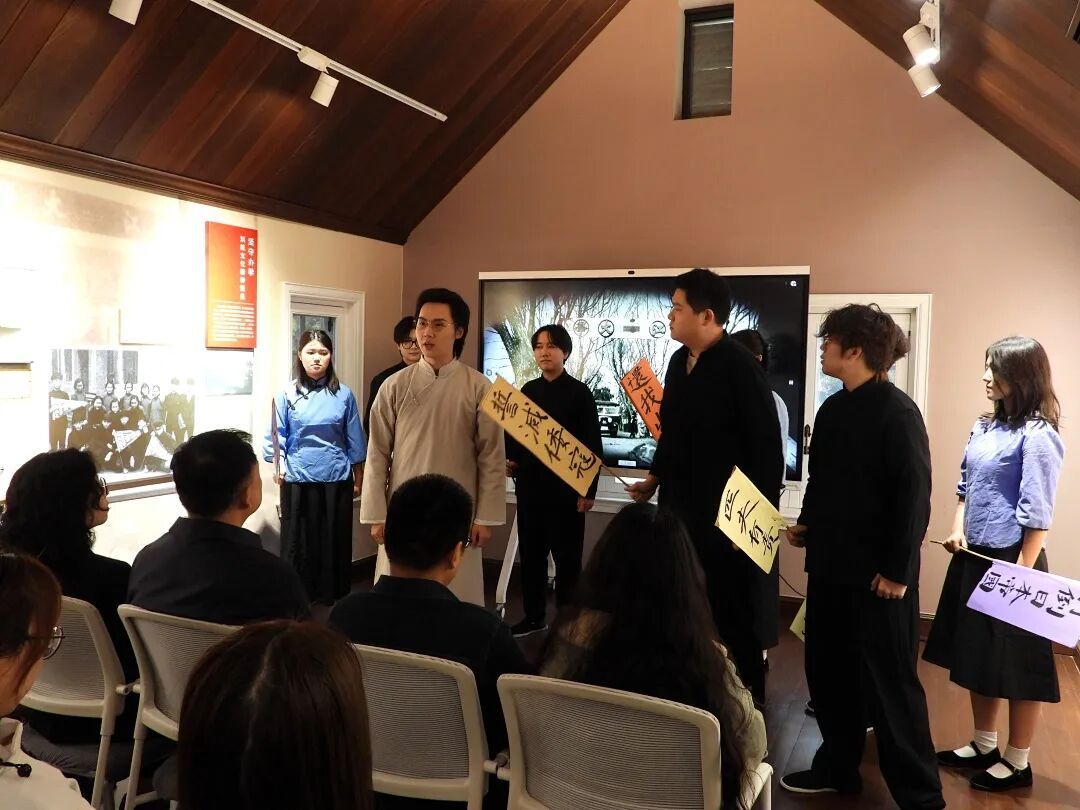 仪式结束后,上海理工大学大学生艺术团带来大师剧《刘湛恩》的精彩片段演出。同学们以生动表演还原了1937年淞沪会战期间,沪江大学首任华人校长刘湛恩劝导学生“读书不忘救国,救国不忘读书”的历史场景,以深情演绎诠释理性爱国、实干担当的深刻内涵。