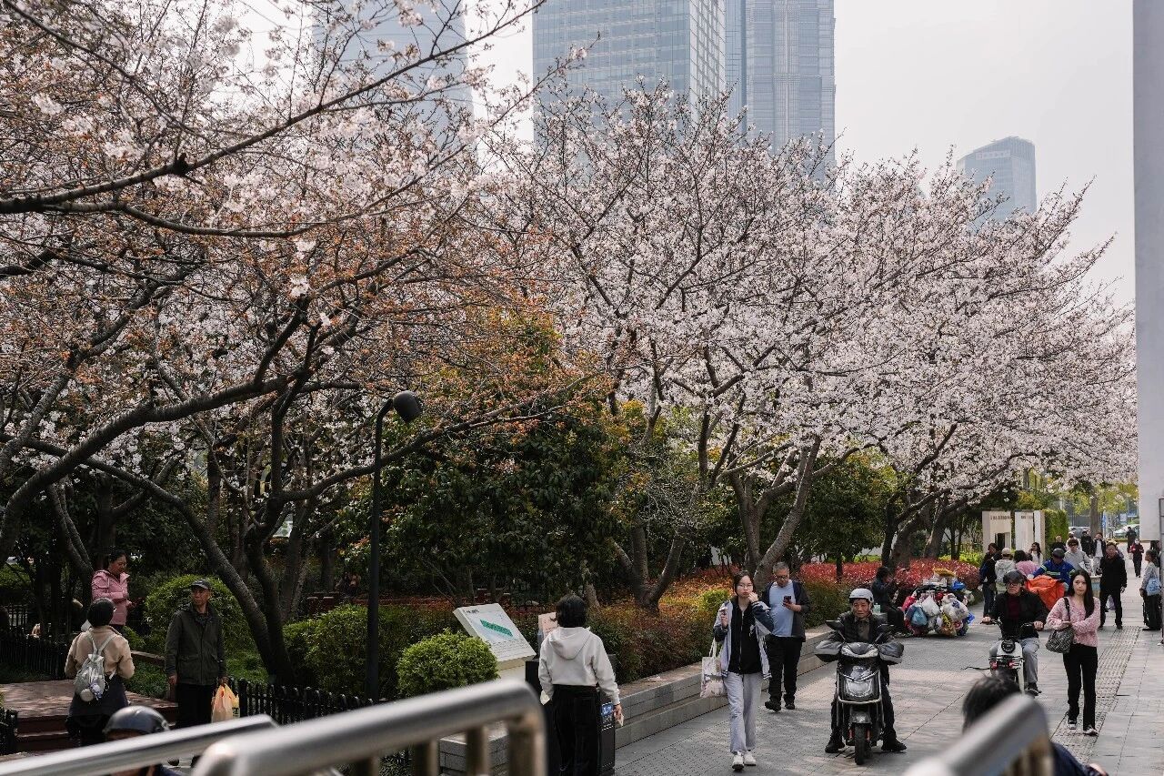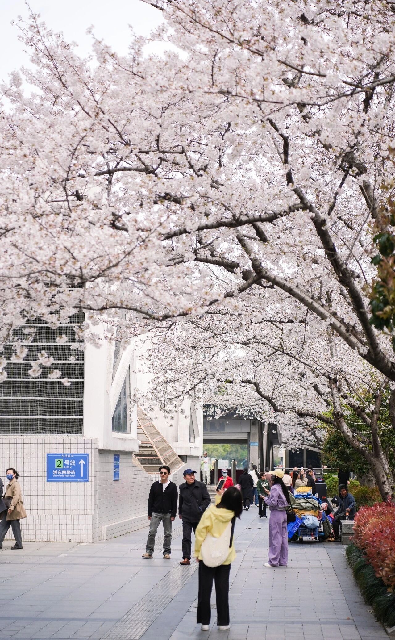 近日,在上海地铁2号线浦东南路站4号口外,樱花雨簌簌落满肩头。这里是老牌樱花打卡地,还能拍到樱花与陆家嘴三件套同框。在地铁站附近的口袋公园内,小桥流水映衬着满树樱花,春风拂过,花瓣簌簌飘落,勾勒出治愈的春日图景,无论是通勤途中驻足,还是闲暇时漫步,都能在这里捕捉到申城春日的浪漫与诗意。