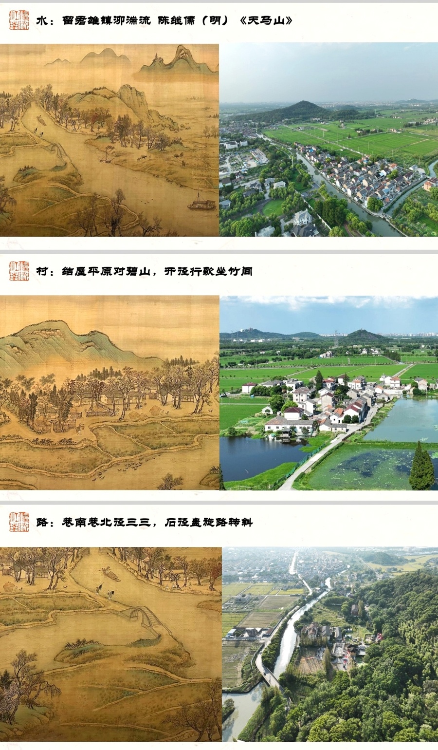 没错,钟灵毓秀的山川水泽,向来有着一种独特的魅力,引得无数文人墨客在此流连驻足。自元代伊始,以天马山为典型代表的九峰三泖之地,便化作了隐士高人雅集的胜境。如今,包含刘家山村在内的天马山单元成为“沪派江南”营造行动的首发单元。一众乡村规划师、建筑师、景观设计师正将古画中“亩中山水·天马行空”的诗意,一锄一镐地编织进现实的土壤里,绘就一幅“亦古亦新、亦雅亦活”的沪上江南长卷。