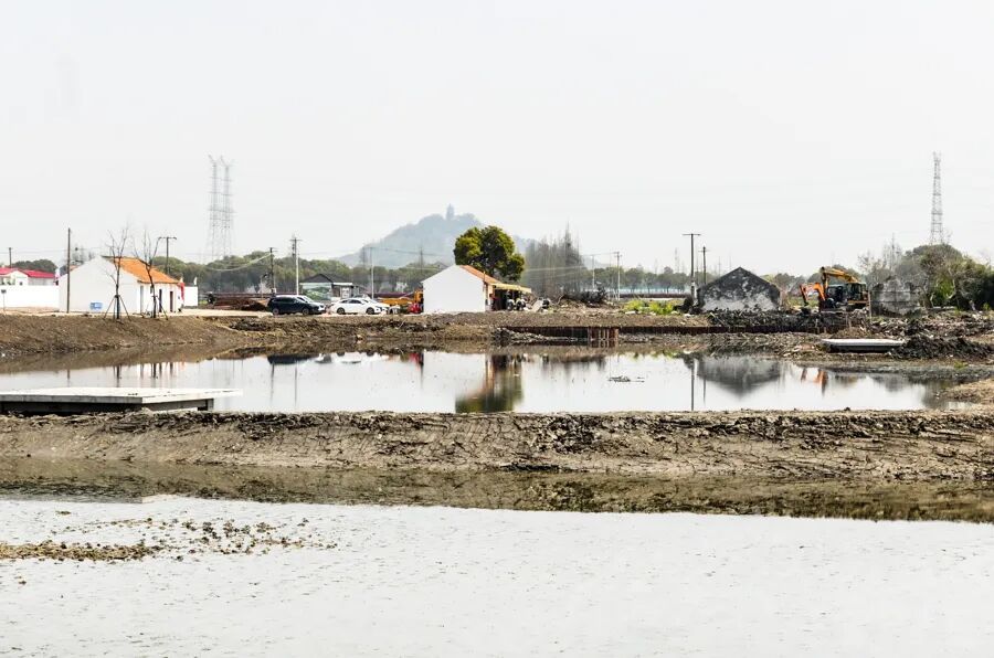 站在正在修建的“农耕展示馆”屋顶,上海市城市规划设计研究院沪派江南天马山单元“三师”(由乡村规划师、建筑师、景观设计师组成的团队)负责人刘晓嫣回忆起她刚刚遇见刘家山村的景象。那时,恰逢春耕时节,水稻田里已经放满泡田的水。一面面天然的镜子将周围的山景一一倒映。环顾四周,东西佘山、辰山、天马山、钟贾山、横云山,还有机山七座如黛峰峦层层叠叠,在澄澈天光下勾勒出起伏的天际线,与稻田水面的倒影相映成趣。“这种‘山抱田拥、水绕山行’的肌理在上海太稀罕了!这是必须守住的自然基底。”刘晓嫣说。
