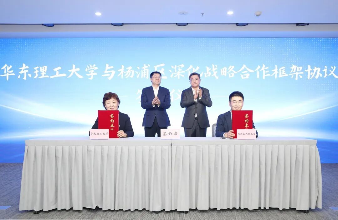 在薛侃、蒋传海的共同见证下,杨浦区副区长刘晋元,华东理工大学副校长王慧锋作为双方代表签订协议。