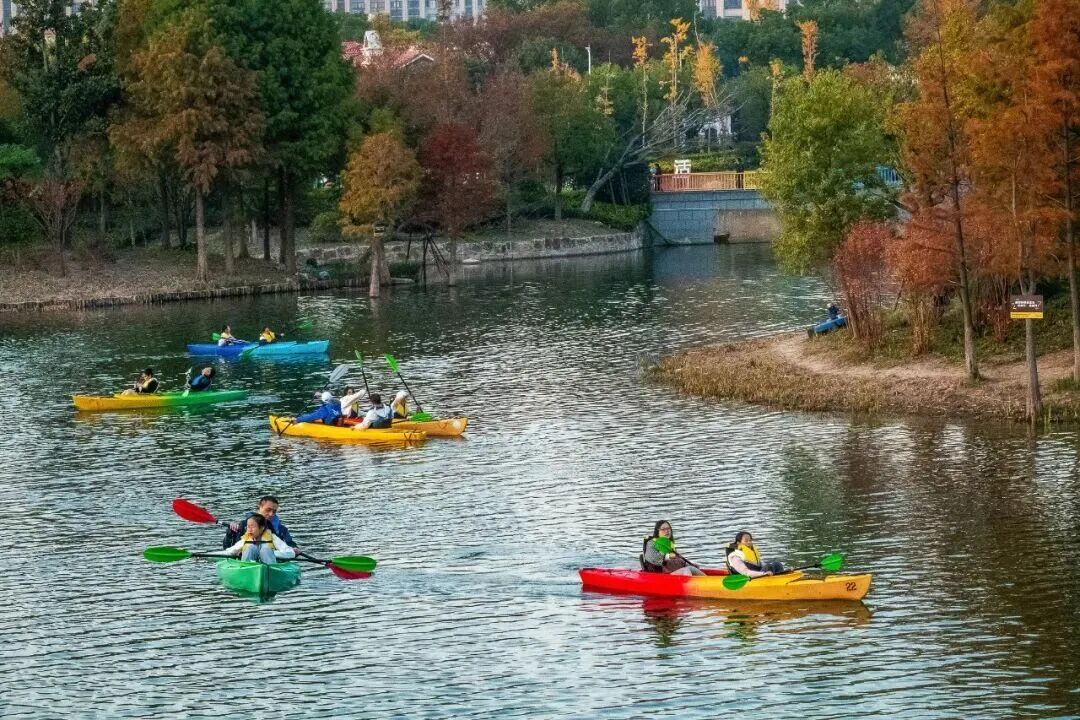 入园打卡蝶状生态景观,漫步湿地涵养区、环湖活动区,观赏樱花、玉兰等春日花卉,打卡观赏性果树,感受亲水生态公园的自然之美,体验“公园20分钟效应”的松弛感。或者打卡园内的皮划艇俱乐部,在碧波中浸润春意滋长。