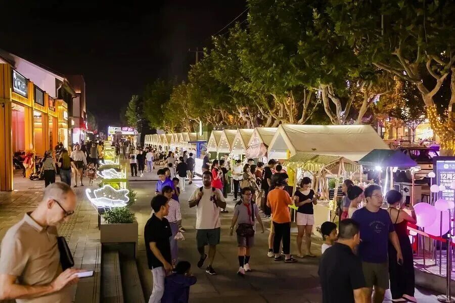 傍晚的十尚坊灯光璀璨,可先沿步道逛徽派建筑、零售小店,体验市井风味,感受时尚与烟火交融的氛围。