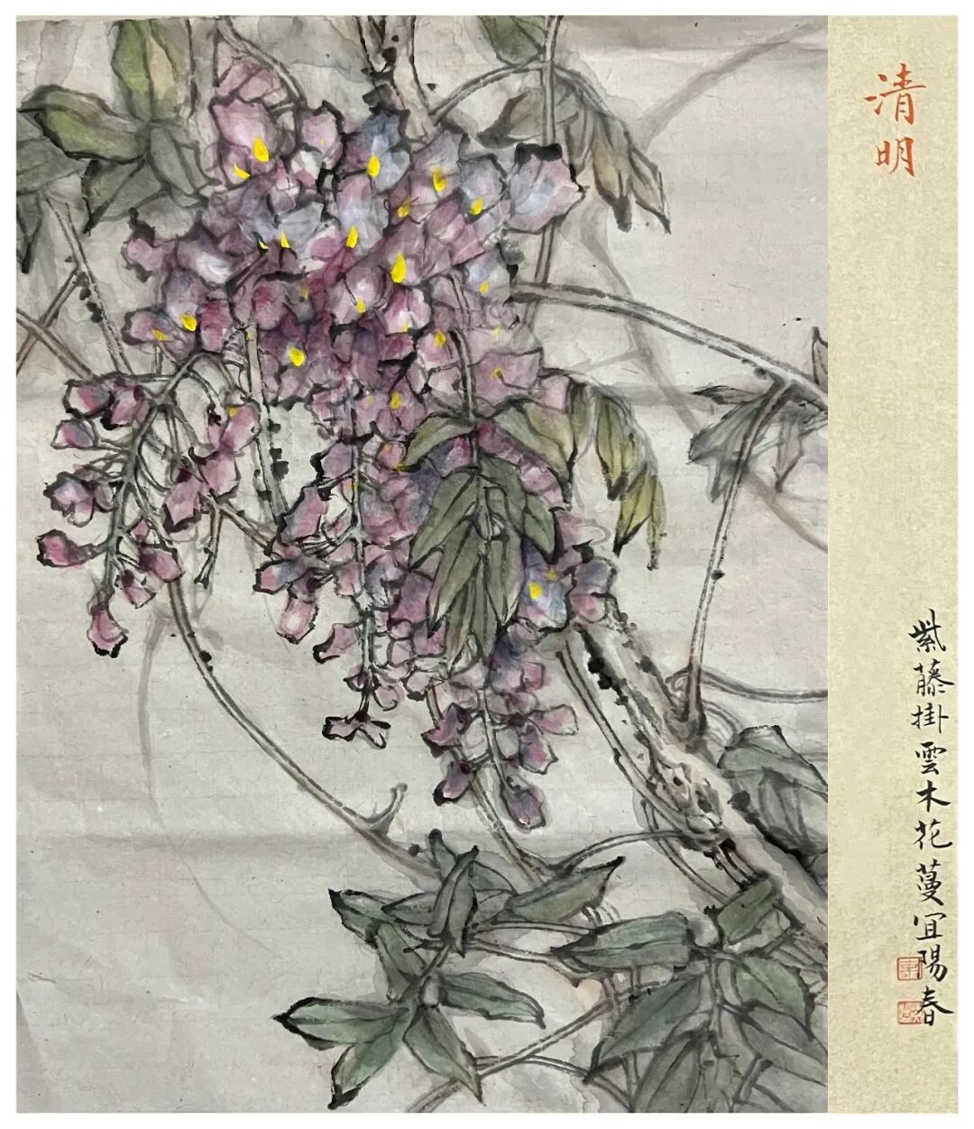 “龙华廿四章”研学活动独具匠心,将二十四节气与二十四位龙华英烈巧妙结合,以“一个节气、一种植物、一位英烈、一本读物”的形式,把红色教育与跨学科教育深度融合,让英烈精神如春雨般润物无声,浸润少年心田。正如徐汇区书画协会副会长余英皓借李白诗句所绘:“紫藤挂云木,花蔓宜阳春”,这春日的绚烂,正是英烈们用生命换来的最好告慰。
