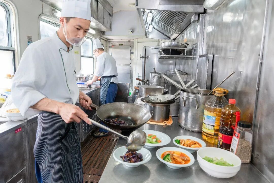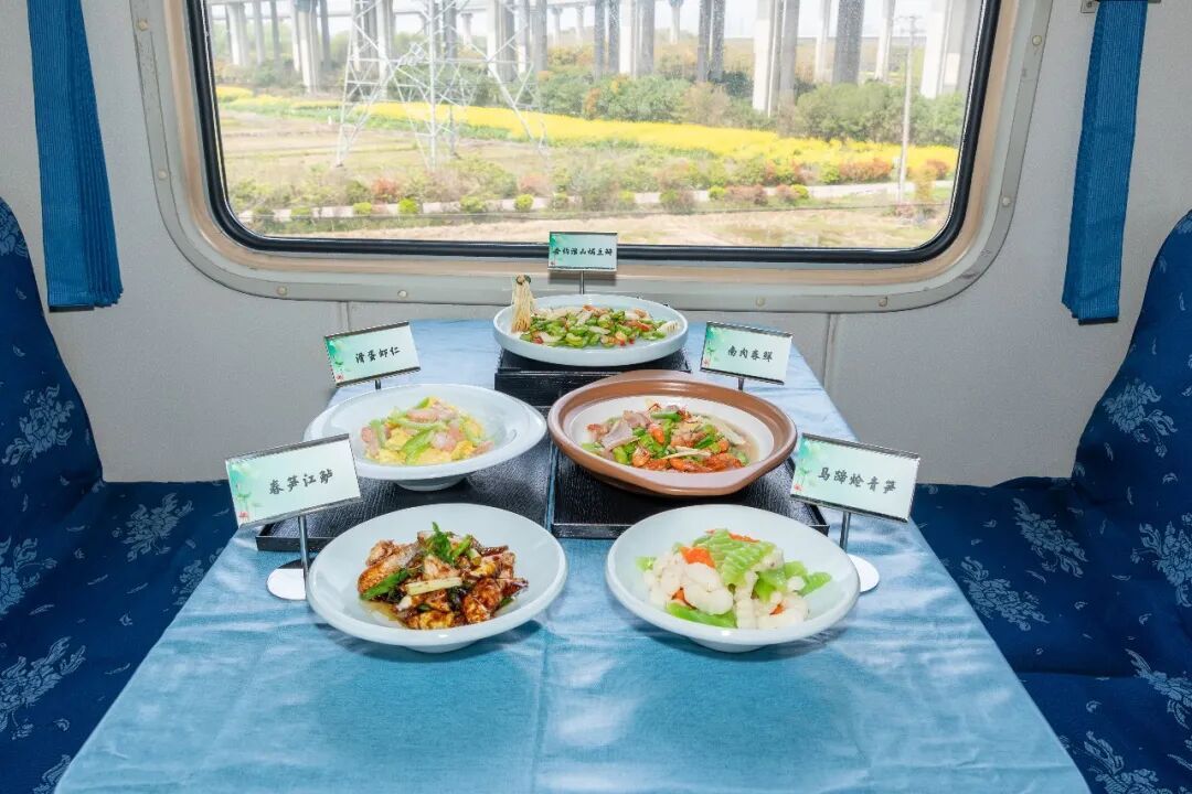 “第一次在列车上看到这种自助模式,真的感觉眼前一亮。”带着孩子前往西安旅游的陈先生竖起大拇指,“关键价格还透明,我儿子爱吃荤菜,我给他挑了红烧肉、鸡腿、牛肉,这么多肉也只要40元。”不少年轻旅客也给出了积极评价,刚结束春游返校的大学生小林说:“我是浙江人,在车上吃到现炒的春笋和江鲈这种时令菜,旅程一下就变得有仪式感了。”