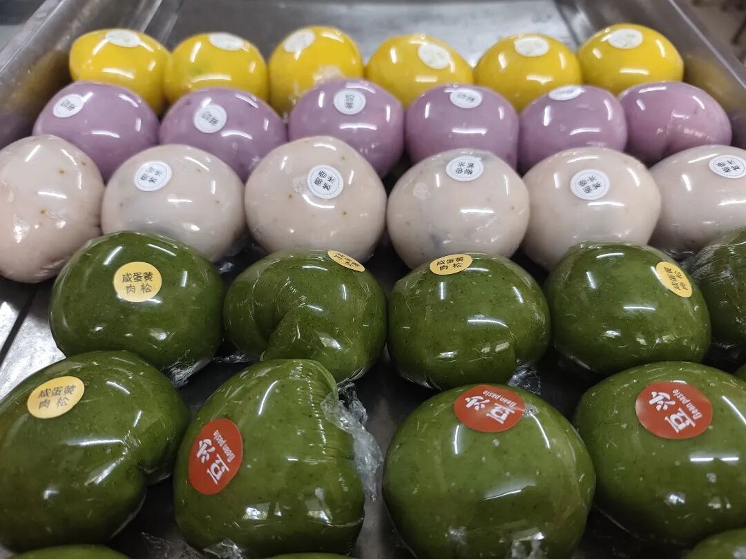 “我们会根据季节做青团、粽子、干蒸圆子、鲜肉月饼、八宝饭等。”沈静指着旁边盆里的泥胡菜说,每到开春,她就会和家人一起驱车前往金山、奉贤的田间地头,在收割后的稻田里寻找野生泥胡菜,整个春天采摘几百斤,焯水去苦后妥善保存,就能留住这份自然的清香。
