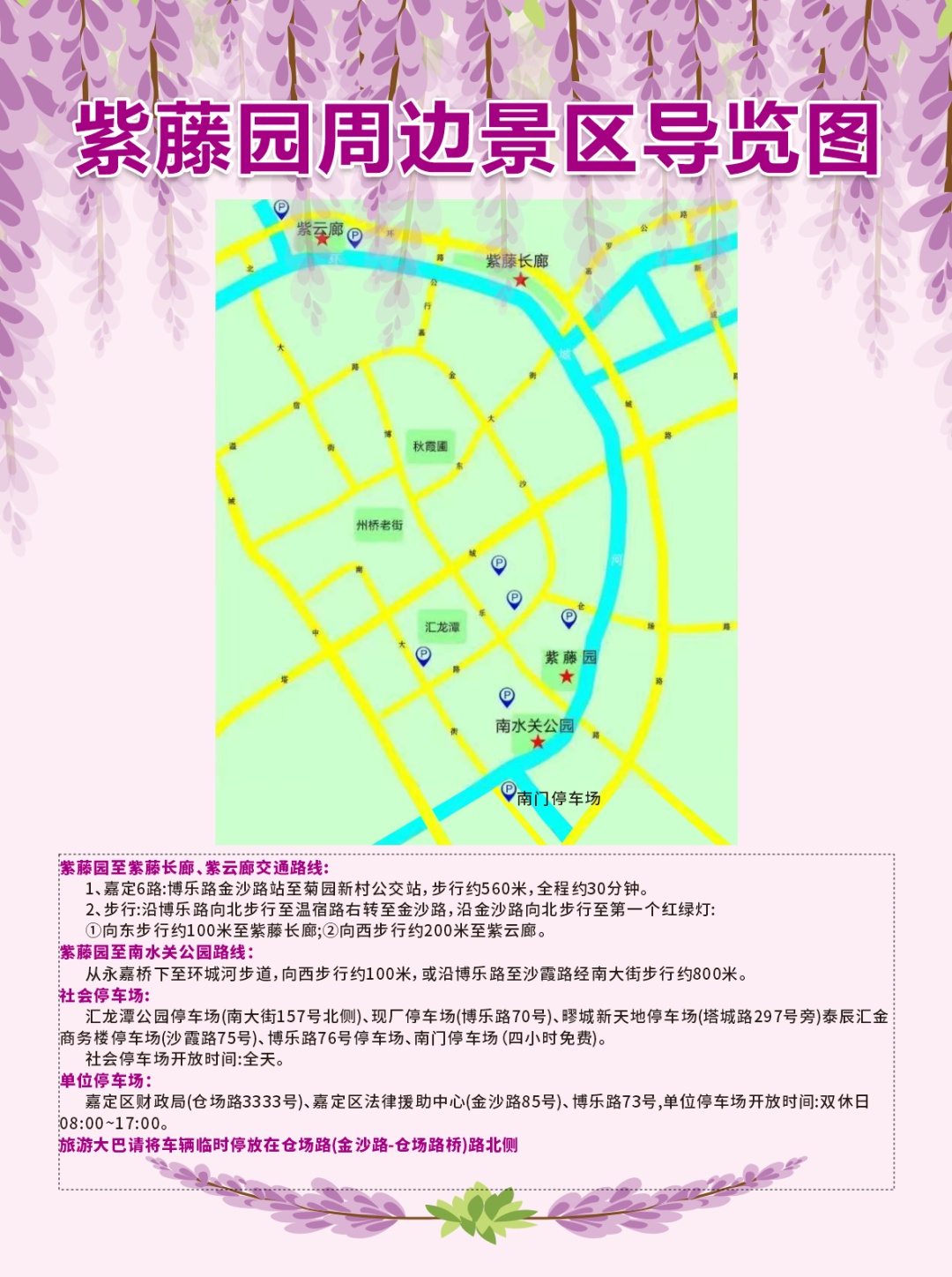 为切实做好今年嘉定紫藤盛花期安全保障工作,为广大市民游客提供安全有序、整洁美观的游园赏花环境,4月11日至4月26日,紫藤盛花期期间,嘉定紫藤园将实行以下措施,具体如下: