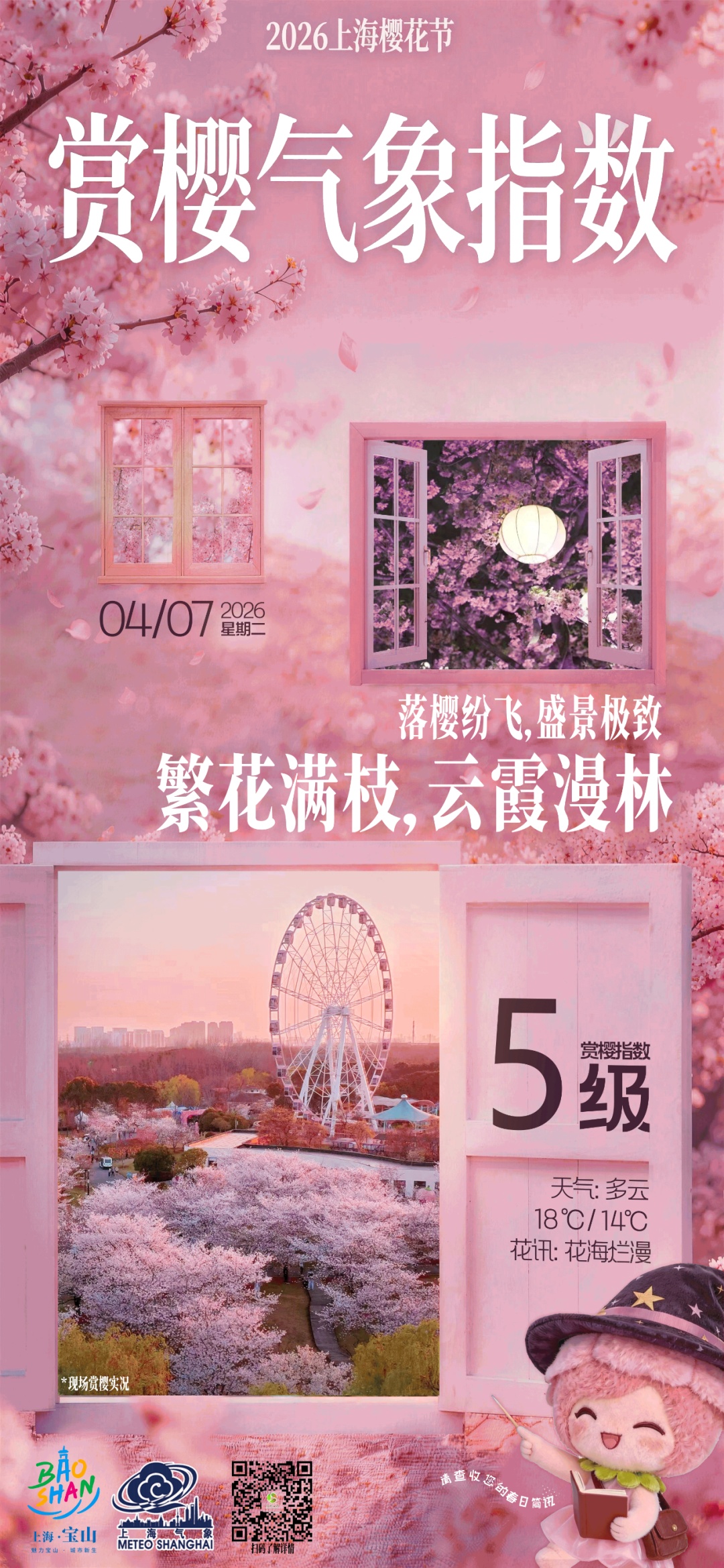 穿衣以舒适休闲为主;夜樱观赏时园区温度稍降,建议注意防寒保暖。
