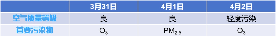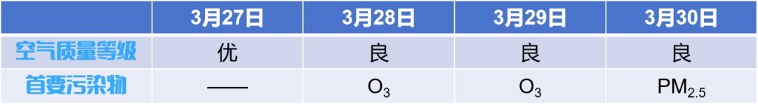3月27日至4月2日徐汇区空气质量等级及主要污染物:
