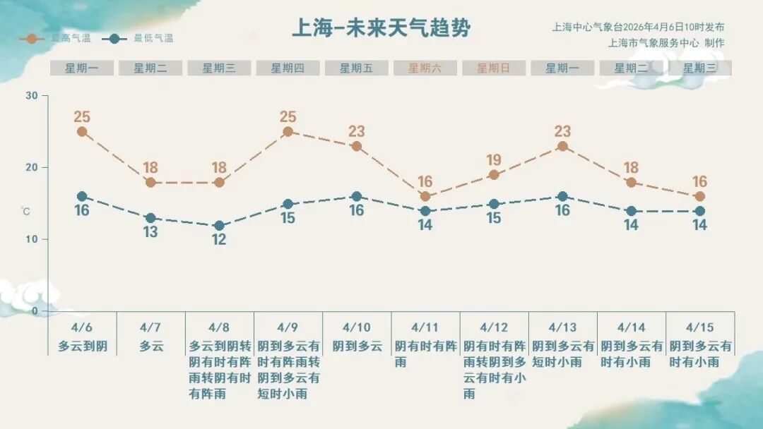 上海中心气象台预计,未来几日天气波动明显。明天是节后首个工作日,以多云天气为主,气温回落至13~18℃,早晚偏凉,市民上班、上学请及时添衣,谨防着凉。周三起,西南暖湿气流活跃,申城多降雨过程,气温回升,周四最高气温可达25℃。降雨间歇期可能出现低能见度天气,请市民密切关注临近预报,合理安排出行与生活。