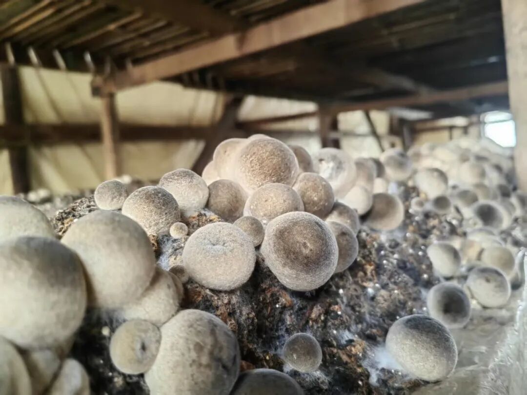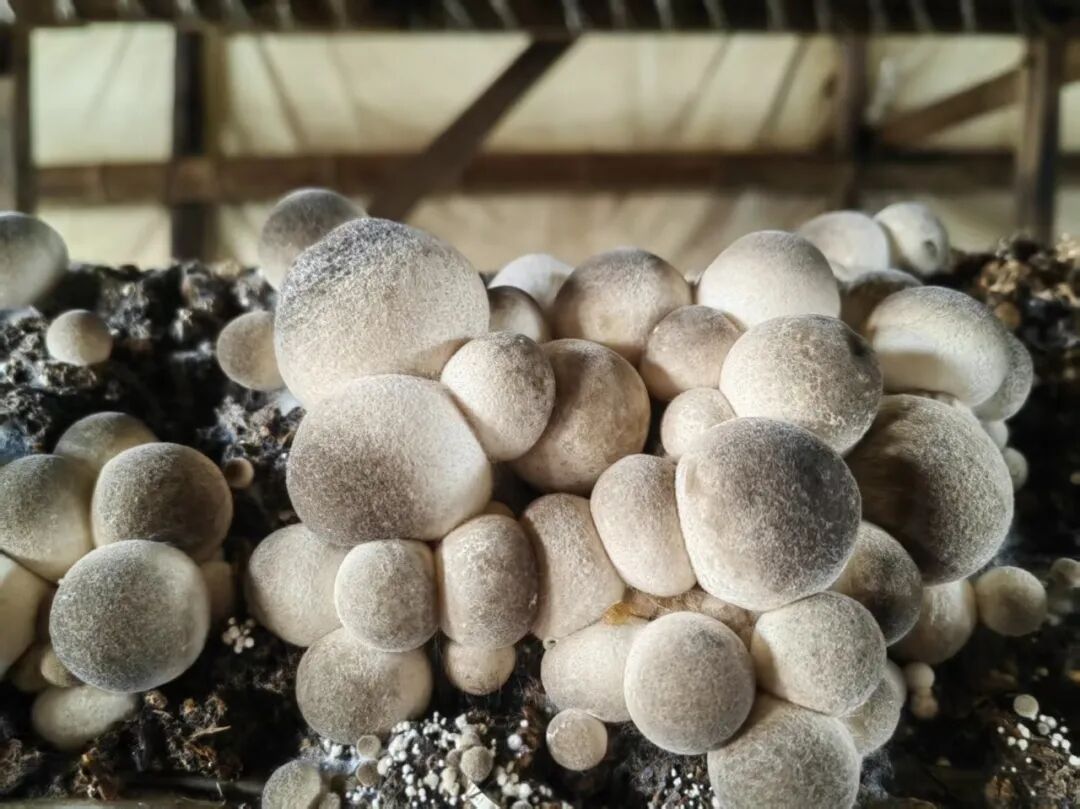 日暖风恬的日子里,草菇也感知到了这股暖意,一个个争先恐后地冒出头来,灰褐色的皮儿,拿手一捏,硬邦邦的,很有弹性。这时候的草菇最好,肉厚厚的,看着就新鲜。