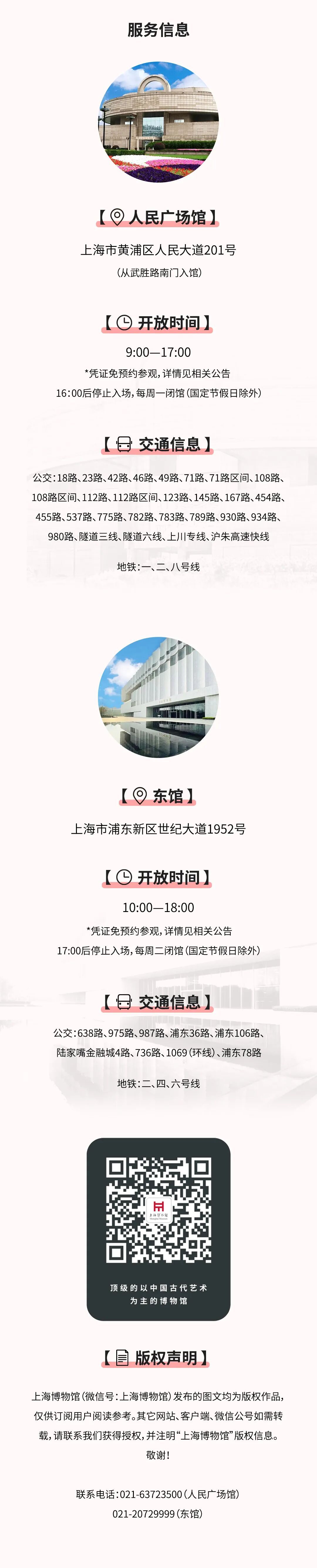 以上展厅、区域经调整后重新开放时间将另行通告,敬请留意上海博物馆网站、官方微信、官方微博等平台的最新动态信息。