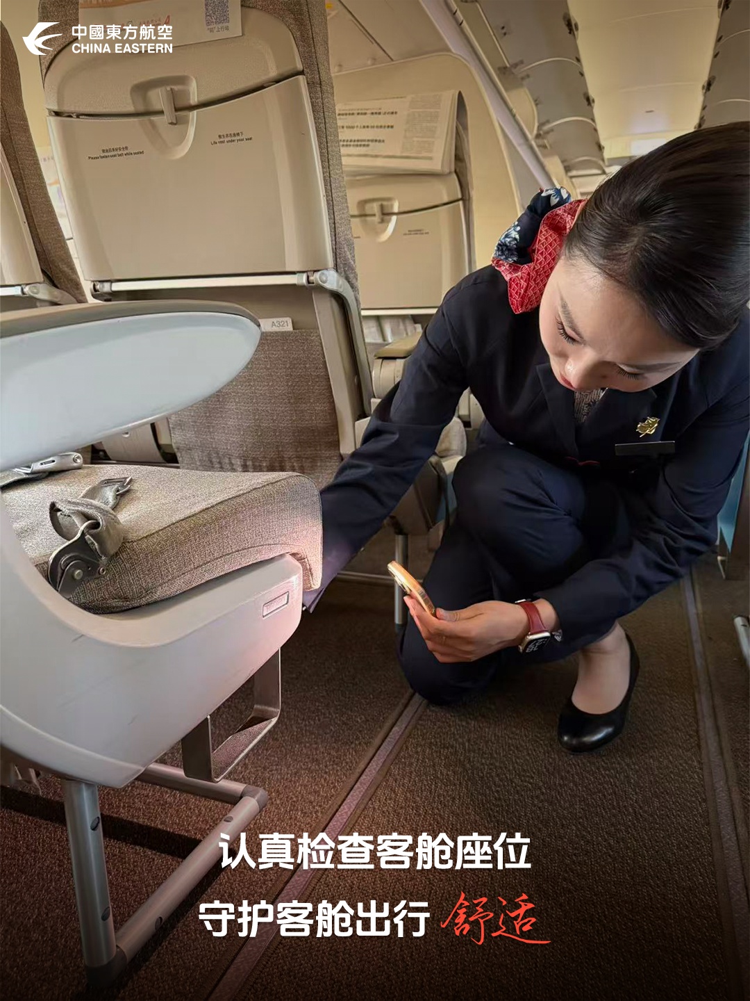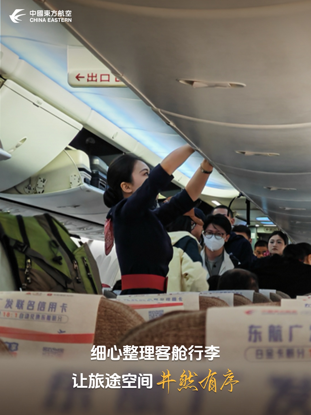 【细心整理客舱行李,规范归置每一件物品,以有序打理营造整洁舒适的客舱环境,守护就藏在这些细致的日常里。——武汉公司 程文】