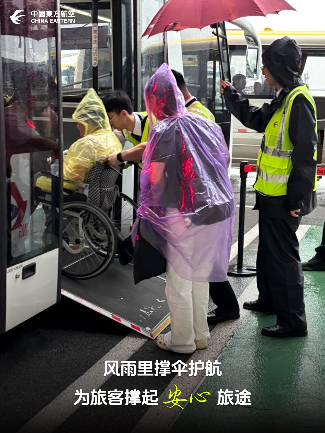 【风雨之中贴心护送,全程照料特殊旅客,用温暖与担当,守护每一段出行之路。——北京分公司】