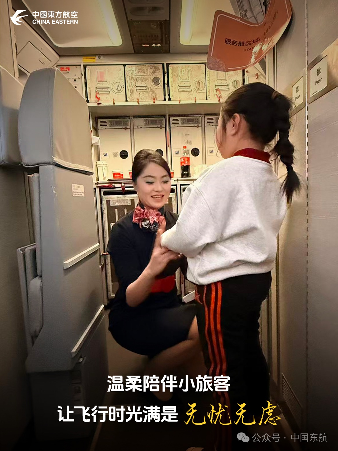 【温柔陪伴小旅客,耐心安抚、贴心照料,用温情守护让孩童的飞行旅途轻松又愉悦。—— 西北分公司 刘飞】