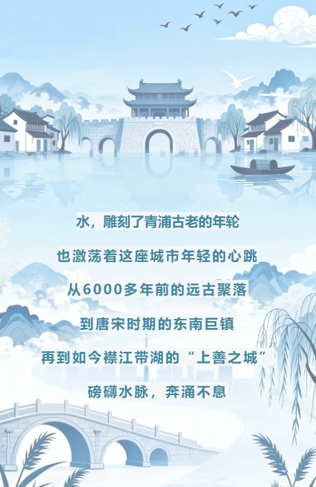 自然脉动 河湖相拥,万物共生其间 青浦,水系纵横、湖荡密布,坐拥1936条河道、23个天然湖泊,是上海重要的生态屏障。近年来,围绕“打造世界级湖区”愿景,青浦区坚持水岸联动,一体治理,严格管控各类污染源,建设环湖生态缓冲带,恢复湿地植被,构建“水下森林”,治理成效日益彰显。 淀山湖 元荡湖 如今,黄浦江源头淀山湖,水草覆盖率从零星分布跃升至40%左右,正从功能性生态屏障,蝶变为可亲近、可感知的“城市绿心”与江南“会客厅”。“一路之隔”的元荡,“醉美郊野湾”“田园绿道”“诗画江南湾”移步换景,碧波上古典园林与现代高铁交相叠影,仿佛将江南的婉约与时代的脉搏一同揉进涟漪里。 “蓝色珠链”之大莲湖 “蓝色珠链”之火泽荡 华为练秋湖研发中心 方厅水院 青西郊野公园 紧邻水乡客厅,串起七湖一河的“蓝色珠链”,今年即将建成。火泽荡、南白荡、西白荡、大莲湖等“每一颗”都熠熠生辉。环湖华为练秋湖研发中心、方厅水院、西岑科创中心、青西郊野公园等错落有致,“珠链十二景”更是点睛之笔,将江南秘境化作游人可漫步、可栖居的诗意画卷。 太浦河 吴淞江 大淀湖 悠悠太浦河,碧绿如绸,两岸涵养林绵延不绝;滔滔吴淞江,水清岸绿、鹭影翩跹,成为城市与自然相拥的生动注脚;盈盈大淀湖,碧波潋滟,倒映着居民触手可及的“诗与远方”…… 人文脉动 水墨古镇,述说清波故事 自然为水赋形,文化为水注魂。在青浦,每一条河道都连通着一段过往,每一座古镇都是一部打开的“水经注”。 朱家角古镇 在朱家角,水是流淌的市井烟火。古镇多条老街依水而生,明清建筑枕水而眠。放生桥上,看淀浦河缓缓流淌;西井河畔,两岸茶馆里飘出评弹的袅袅余音。 练塘古镇 在练塘,水是沉静的红色记忆。练塘市河穿梭古镇,两岸老屋斑驳,流水从陈云故居门前流过,从茭白叶编织的指尖流过,从“无商不活,无水不灵”的老话里流过。 金泽古镇 在金泽,水是时光的摆渡人。宋元明清四朝古桥,于古镇如虹卧波,普济桥、如意桥、迎祥桥等,每一座桥都在水上守候数百年。桥上看水,水边闻钟,香火与桨声相伴…… 一湾碧水,满载古镇乡愁。流水潺潺,亦是家乡最温柔的脉络。 城市脉动 蓝绿交织,流淌生活美学 青浦,依水而起,也因水而兴。环绕青浦新城的,是绵延数十公里的环城水系,生态保护与城市生活无缝衔接,成为国内少有的城市生态项链。 上达河、油墩港、淀浦河、西大盈港 青浦区图书馆 大隐书局×知道书院 上达河、油墩港、淀浦河、西大盈港等交错相连、环抱新城,串联起数十个公园、休闲场所,以及青浦区图书馆、青浦区博物馆、大隐书局×知道书院等文化地标。沿着水岸漫步,不经意间便能与一场展览、一次讲座相遇——水在脚下,诗在眼前。 夏阳湖、沁园湖、如心河、香雪河 在青浦新城里,还有夏阳湖、沁园湖、如心河、香雪河、晨兴湖等如明珠点缀其间,碧波与都市相依相生、相映成趣。水在城中流,城在水畔游。 乡村脉动 浸润田园,村居掩映如画 河湖流淌,穿镇过桥,漫向田野,在青浦乡间写下了另一行诗。从虹桥枢纽向西,一条条生态清洁小流域如碧色丝绦,温柔串联起散落的村庄。 徐泾镇金云村 重固镇回龙村 朱家角镇张马村 练塘镇东庄村 徐泾金云村,智慧水文与透水铺装静默运转;重固北部五村,流水绕村、岸绿景美,四季轮回皆成诗行;朱家角张马、李庄村,清溪潺潺滋养香樟,生态浮岛托起睡莲绮梦;练塘东庄、东厍、徐练三村相依,碧水蜿蜒,青田叠翠,村民推窗见绿、枕水听涛;金泽莲湖村裁云剪水,生态护岸上鸢尾摇曳,智能监测站如白鹭静立…… 这些村庄,或毗邻繁华而独守清幽,或深藏水云间自成天地,以清澈守护着一方灵秀,让每一滴水都流淌着乡愁,让每一寸土地生长出希望。 水,从远古流来,穿过历史风雅,浸润今日生活,又向未来奔涌而去,成为青浦最悠长的脉动。让我们俯身掬一捧“青”水,掌心里荡漾的,是岁月的倒影,是家园的清韵,更是我们许给未来的清澈诺言。