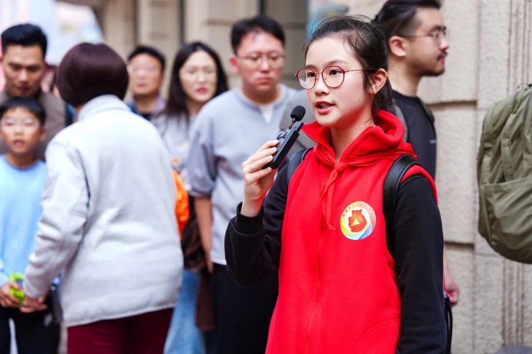黄浦区小小红色宣讲员结合历史,生动讲述南京路上不同点位的红色记忆,除了参与活动的市民,不少途径的游客也停下脚步驻足聆听,纷纷打开手机记录南京路上的初心记忆。