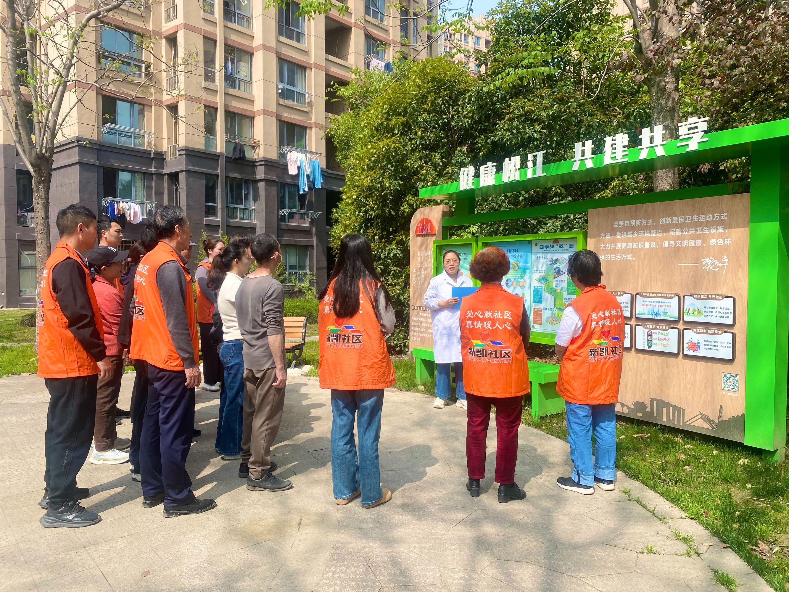 下午的现场行动在德悦苑小区内多点同步开展。在“公共卫生委员会议事”环节,各方代表围绕春季爱国卫生活动展开商讨,重点聚焦蚊虫孳生地清理、毒鼠盒维护、楼道堆物整治等具体问题,最终达成共识:建立社区、物业、志愿者和居民的联动机制,推动环境治理常态化、长效化。随后,家庭医生在小区花园的“病媒科普点”开展现场讲解,指导在场的居民和志愿者如何防范蚊虫孳生。