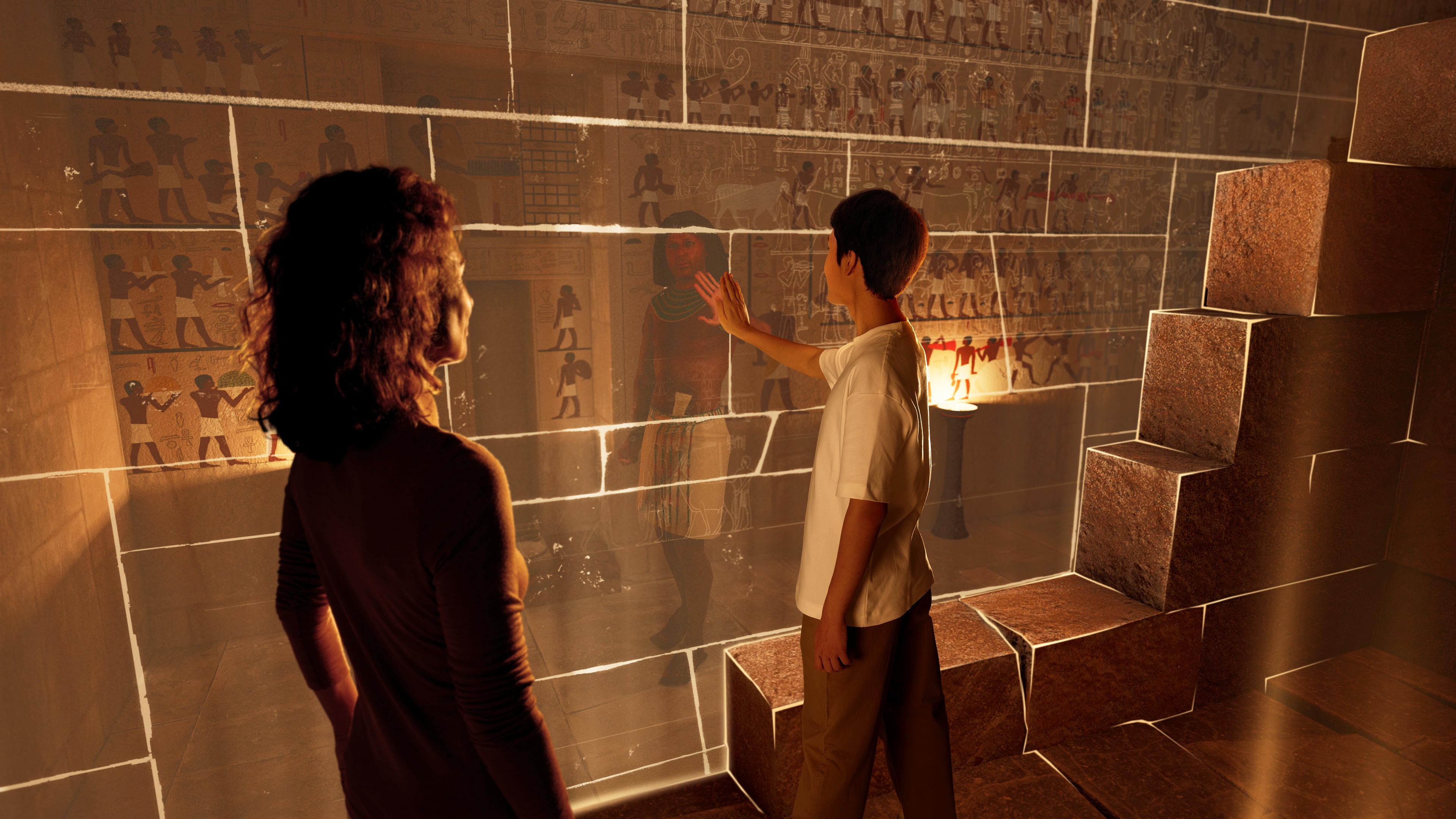 在本次体验中,这些空间被数字化还原,观众将能够以第一视角进入其中,在金字塔内部结构中进行观察与探索。这也是相关考古发现首次以公众可体验的方式呈现。