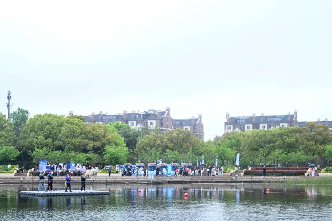 这是“纸鸢舞动 文明新城”杨浦区新江湾城第十九届风筝主题系列活动暨新江湾城文体公园生态风筝季的活动现场。作为此次活动的一大亮点,水上片区的“水上风筝芭蕾编队”表演在公园水域上空精彩上演,为市民游客带来了一场别开生面的视觉盛宴。