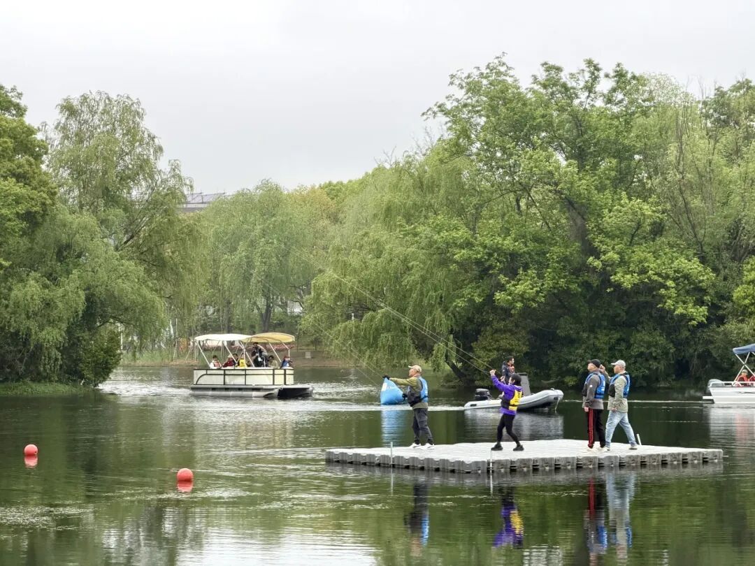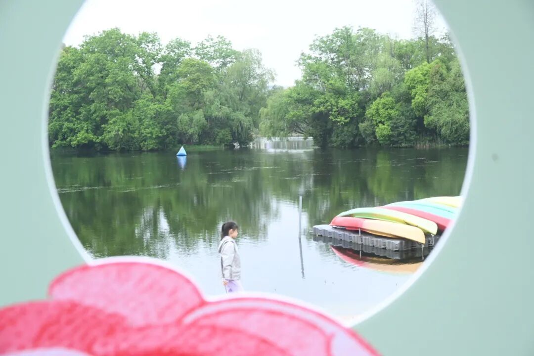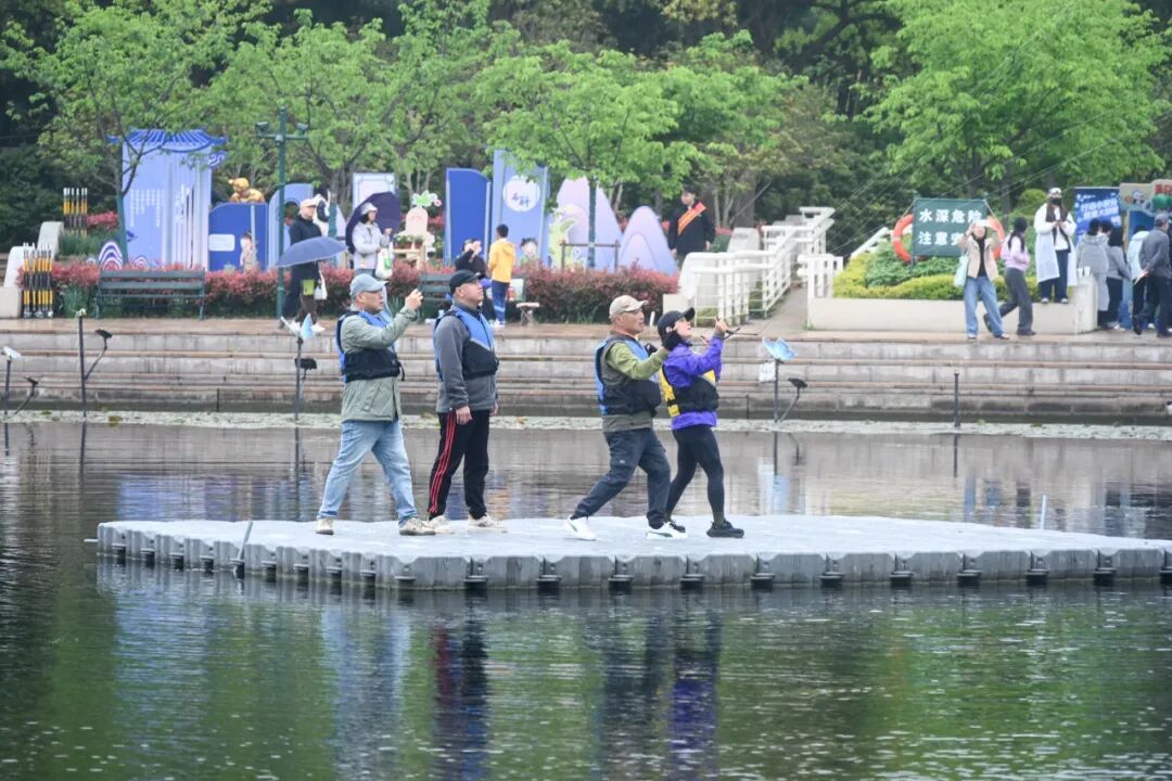“太漂亮了!从没想过雨天还能放风筝,而且放得这么优雅。”带着孩子前来参加活动的市民张先生一边凝神观看,一边忍不住录下视频。水面倒映着飞舞的风筝,大家在此一边欣赏表演,一边享受春日时光。