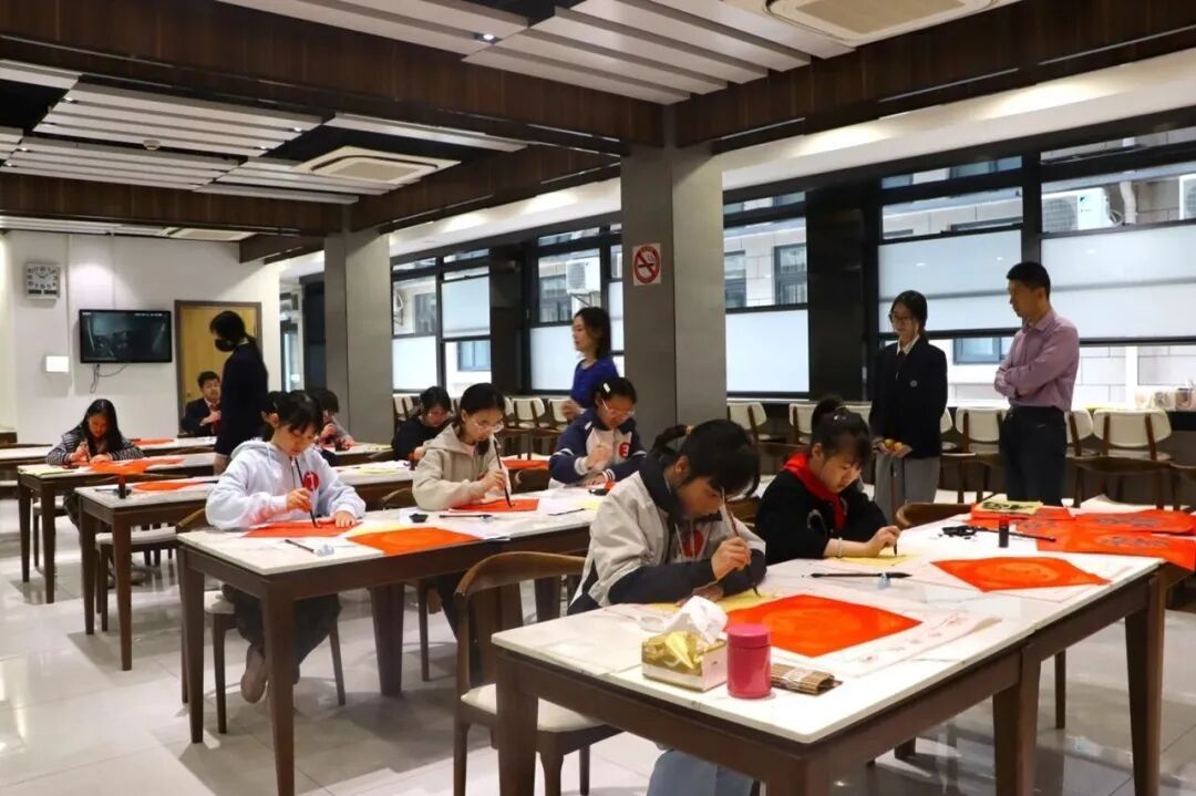 书法活动室里墨香四溢,“翰墨飘香——书法”体验区人头攒动。书法社团的学生作品陈列其中,引得大家阵阵赞叹。孩子们在书法老师和社团成员的耐心指导下,提笔蘸墨,感受软笔书法的独特韵味,不少孩子还小心翼翼地将自己的作品珍藏带走。