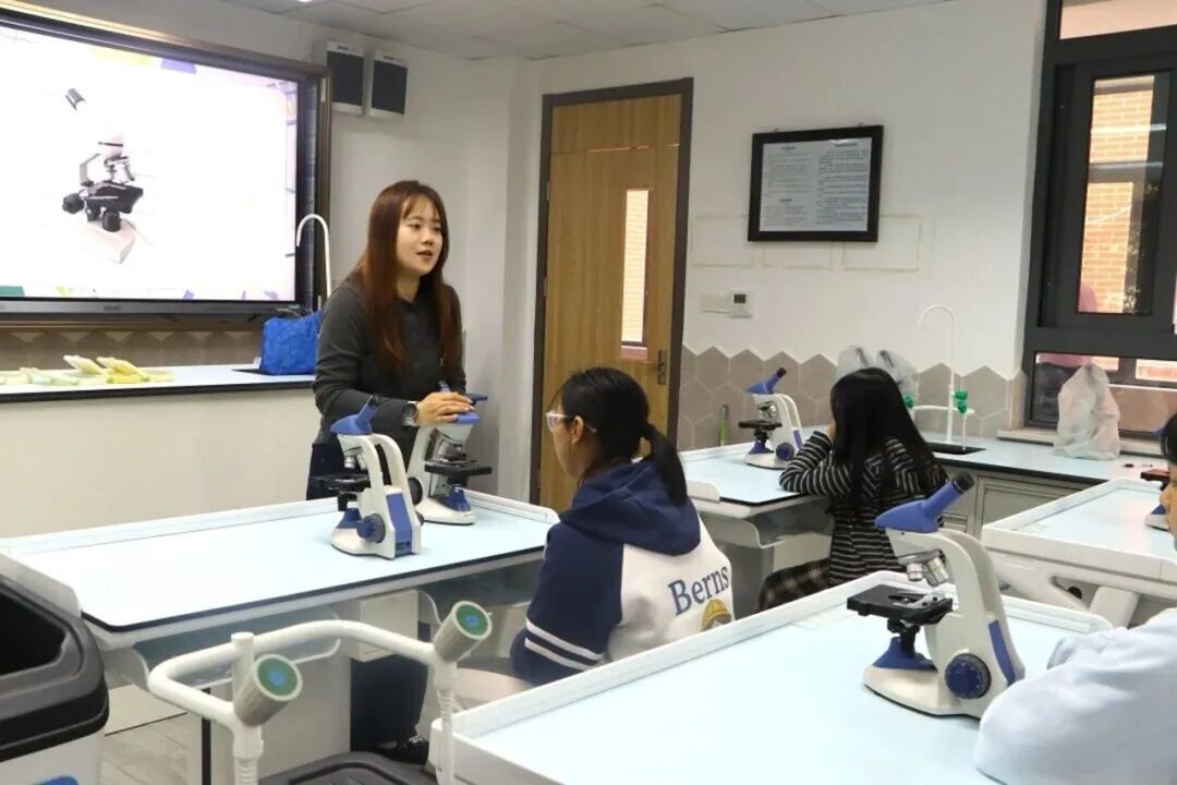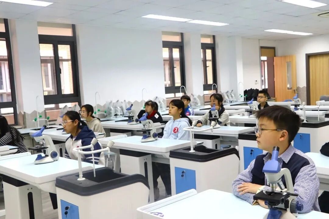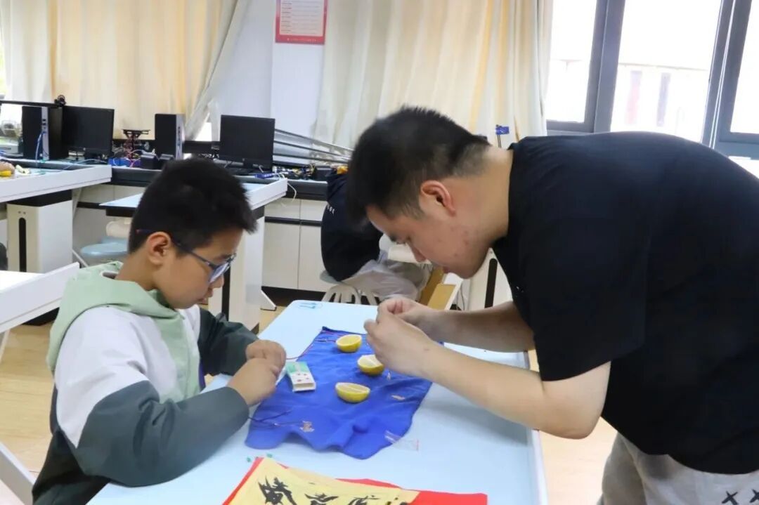 实验室里探究气息浓厚。“水果电池”课程中,孩子们利用柠檬、导线等器材组装电池,探索电流奥秘,部分学生还尝试用可乐完成进阶实验;“被放大的世界”课程则带领学生走进显微镜下的微观天地,感受科学的神奇。