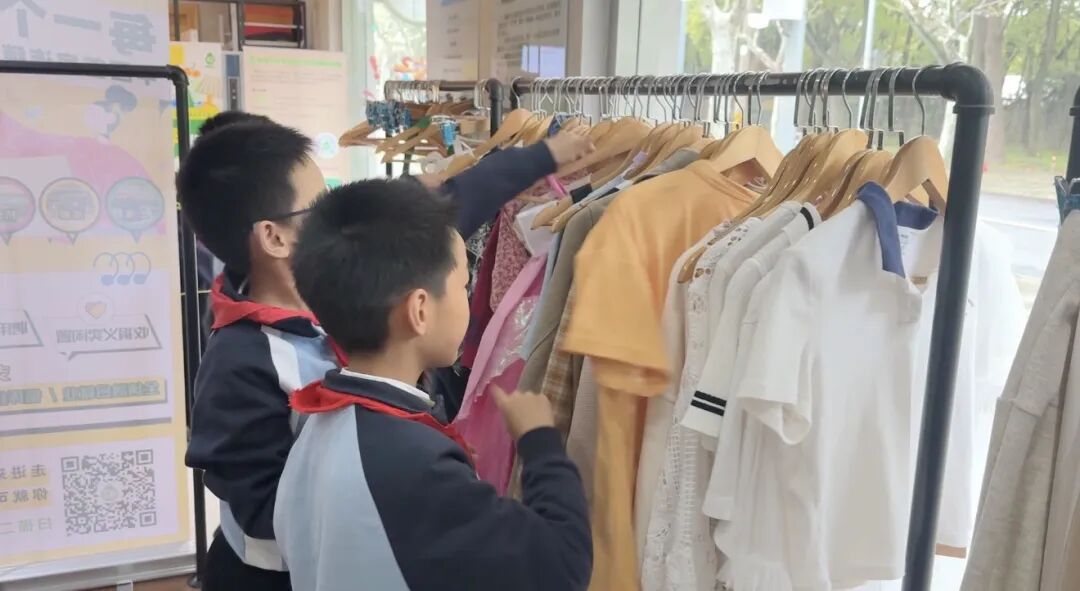 “生产一条牛仔裤需要多少水?”活动最初的“善淘介绍”环节,工作人员通过互动问答,让同学们理解,义卖二手、闲置物品,不仅是让闲置资源“重获新生”,更是用微小行动为地球减负,让环保从口号变成触手可及的日常。同时,也向同学们介绍了衣物捐赠后的处理流程——经过消毒、整理,这些衣物会以3-7折的价格卖给需要的人,所得收入会用来帮助残障人士就业。