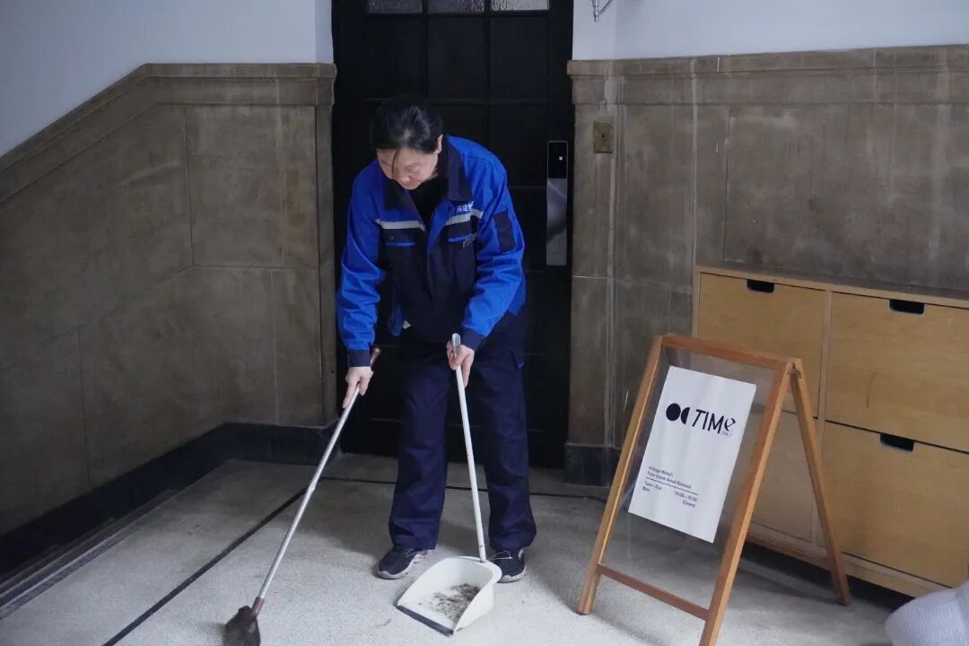 为了守护好大楼的历史风貌,物业在居民装修时会全程跟进,每天到现场监督指导,严禁破坏历史制式钢窗、白玻璃、水磨石地面等历史建筑元素。“有一次,居民家里装修时,工人不小心震倒了管洞井的单墙,砖头掉落砸坏了楼下的管道,还导致底楼居民无法正常居住。”董梁回忆,事发时正值清明假期,他和武康大楼专管员刘滢第一时间赶到现场,一边安抚居民,一边协调处理。“维修的难点不仅在于协调上下楼居民配合维修,更在于‘修旧如旧’,我们物业团队连续两天在上海各建材市场寻找,就为了能找到花纹、颜色完全一致的瓷砖。”