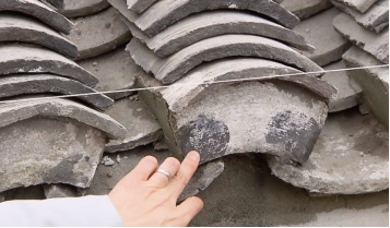修缮一大会址屋顶时铺设瓦片使用的粘合材料