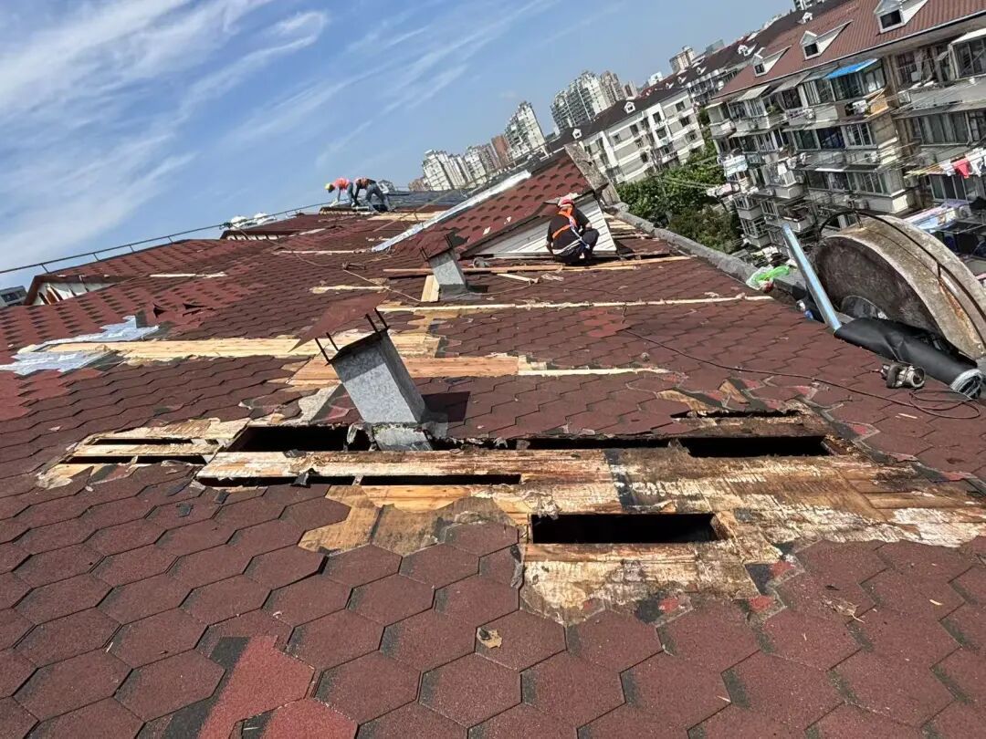 沽源路110弄沽源小区,是建成三十余年的90年代商品房,历经多年风吹日晒,屋顶码片、毛毡、木板严重破败,屋顶漏雨问题频发,雨水蔓延至楼道,影响居住环境,存在安全隐患。