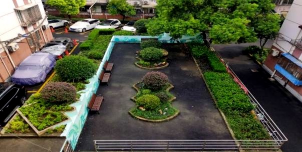 在区房管局达标奖励政策支持下,一场改造开始了。2023年,盘活闲置资源,将堆满杂物、无人问津的废弃车库顶部清理整治,用有限经费精心打造出集休闲、议事、聚会于一体的邻里小花园,让居民终于有了专属的公共活动空间。
